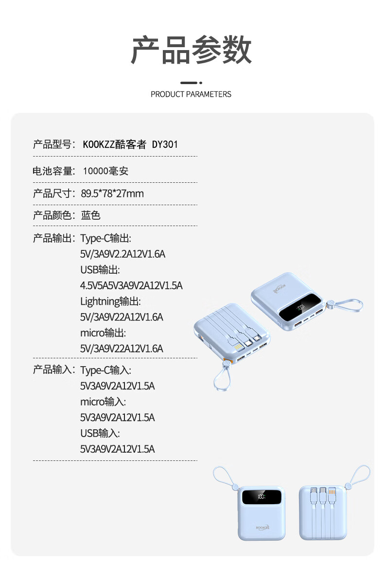 【分仓直发包邮】KOOKZZ酷客者Mini超级快充移动电源(可上飞机)DY301