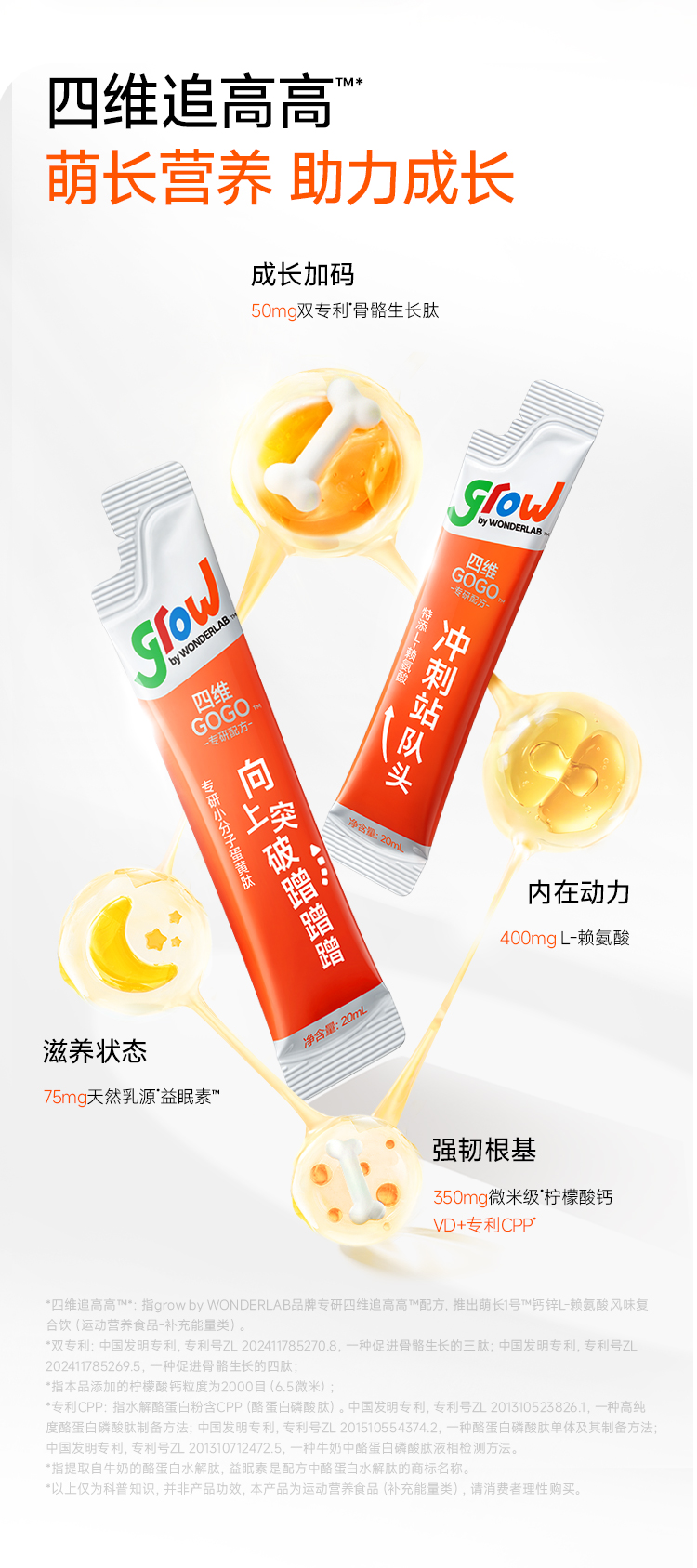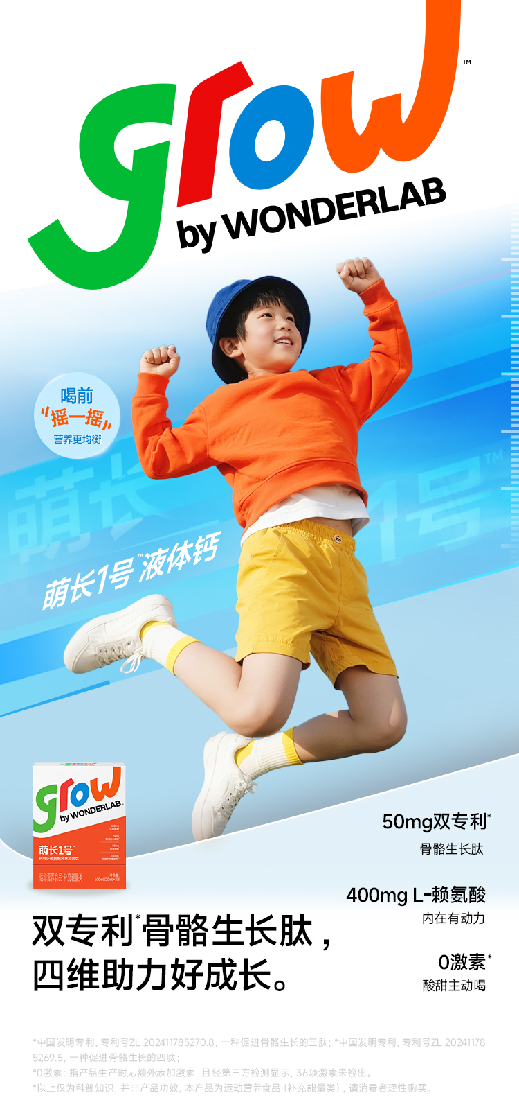 【快递到家】万益蓝WonderLab赖氨酸生长素液体钙-适合6-18岁(20ml*30条/盒)另赠同款2条+维生素D(18g/袋6颗)生产日期: 2025年9月