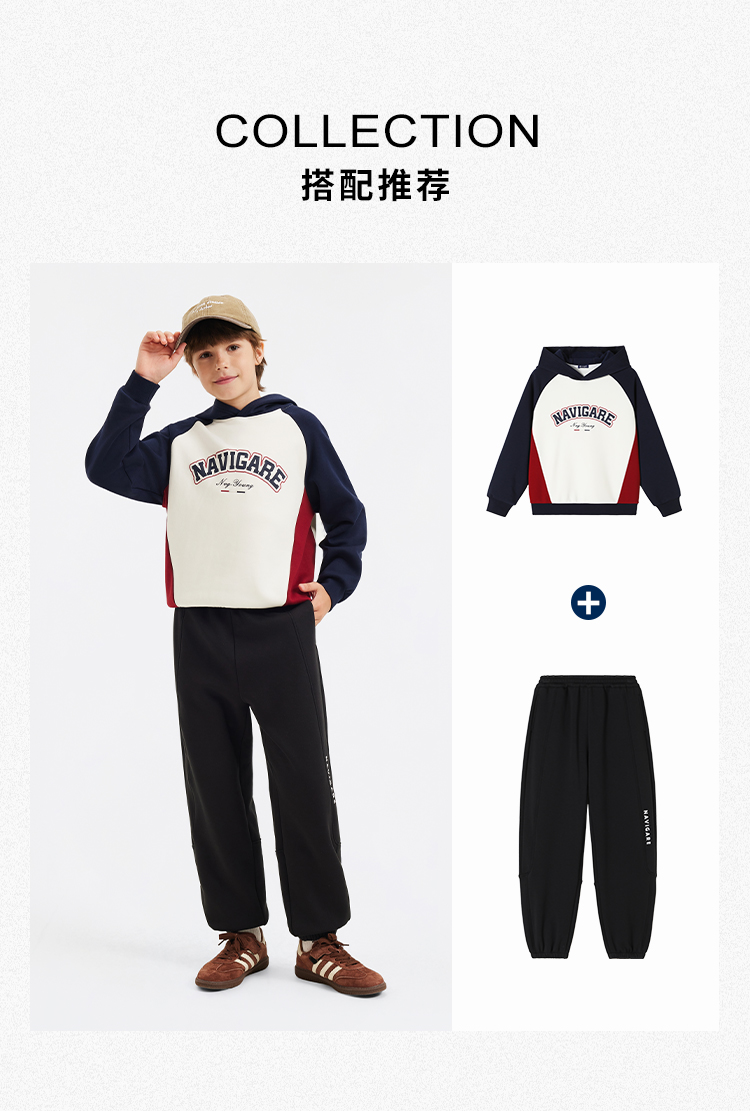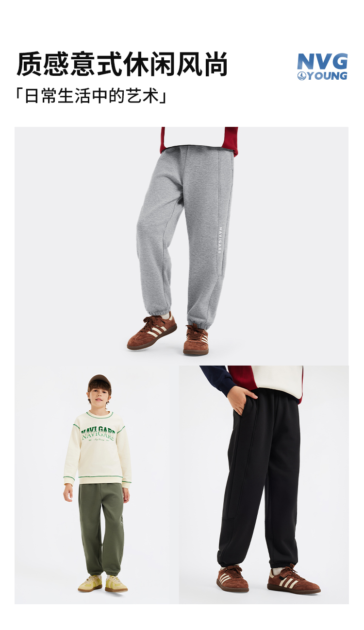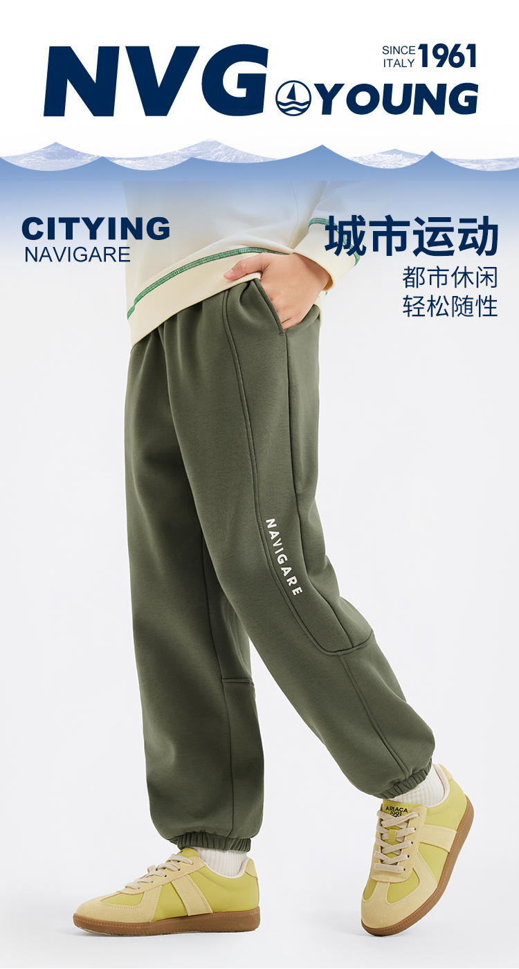 【纳维凯尔】【加绒】【120-160】意大利小帆船童装男童冬款加绒保暖休闲卫裤