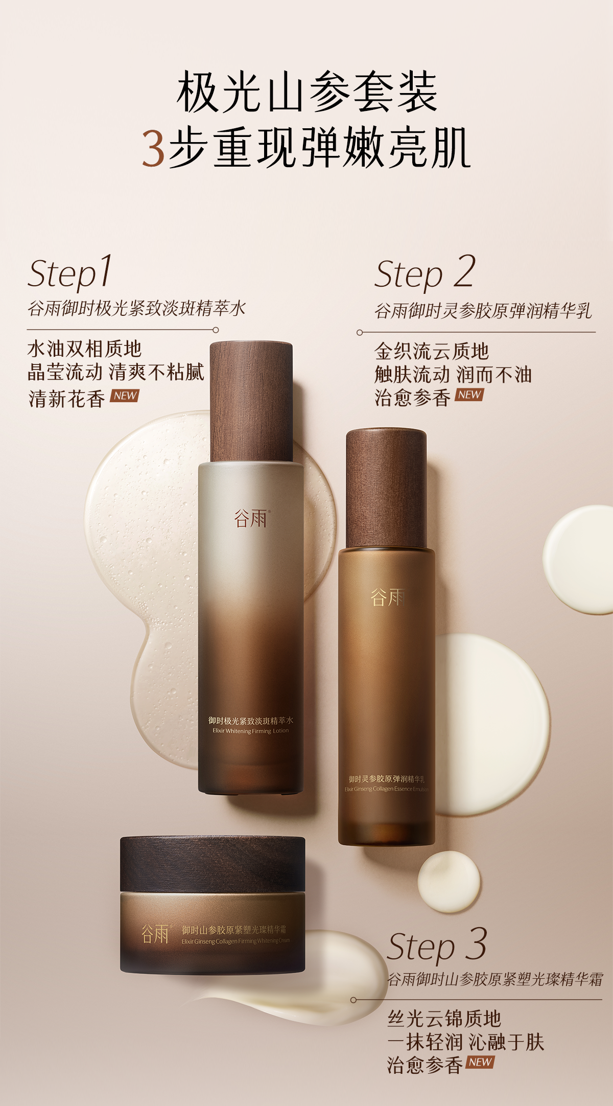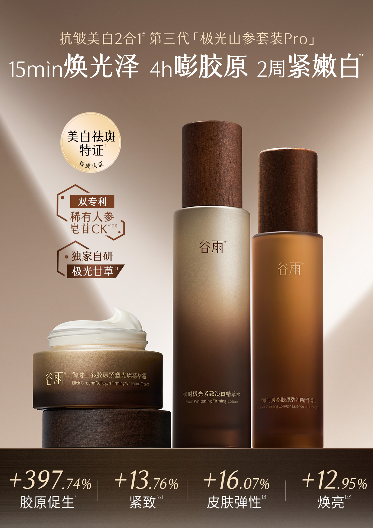 【紧致淡斑印】谷雨极光山参水乳霜套组 15min焕光泽 4h嘭胶原 2周紧嫩白*