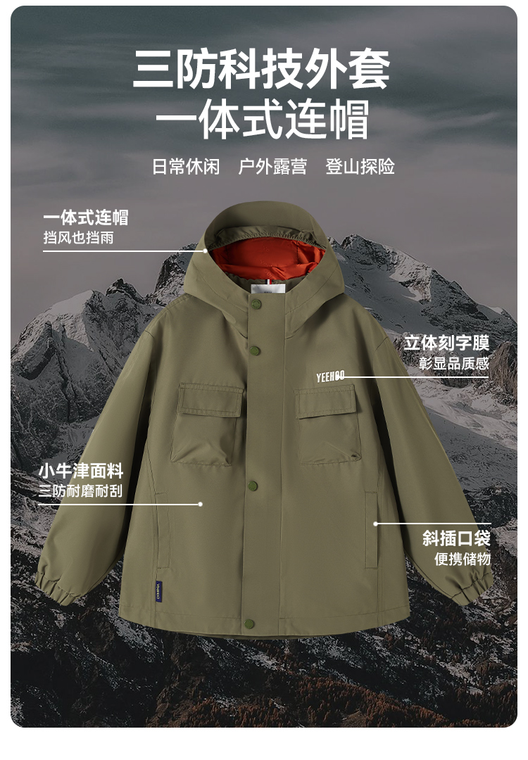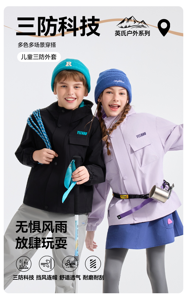【英氏】【三防科技】【110-175】男女童春秋款冲锋衣外套