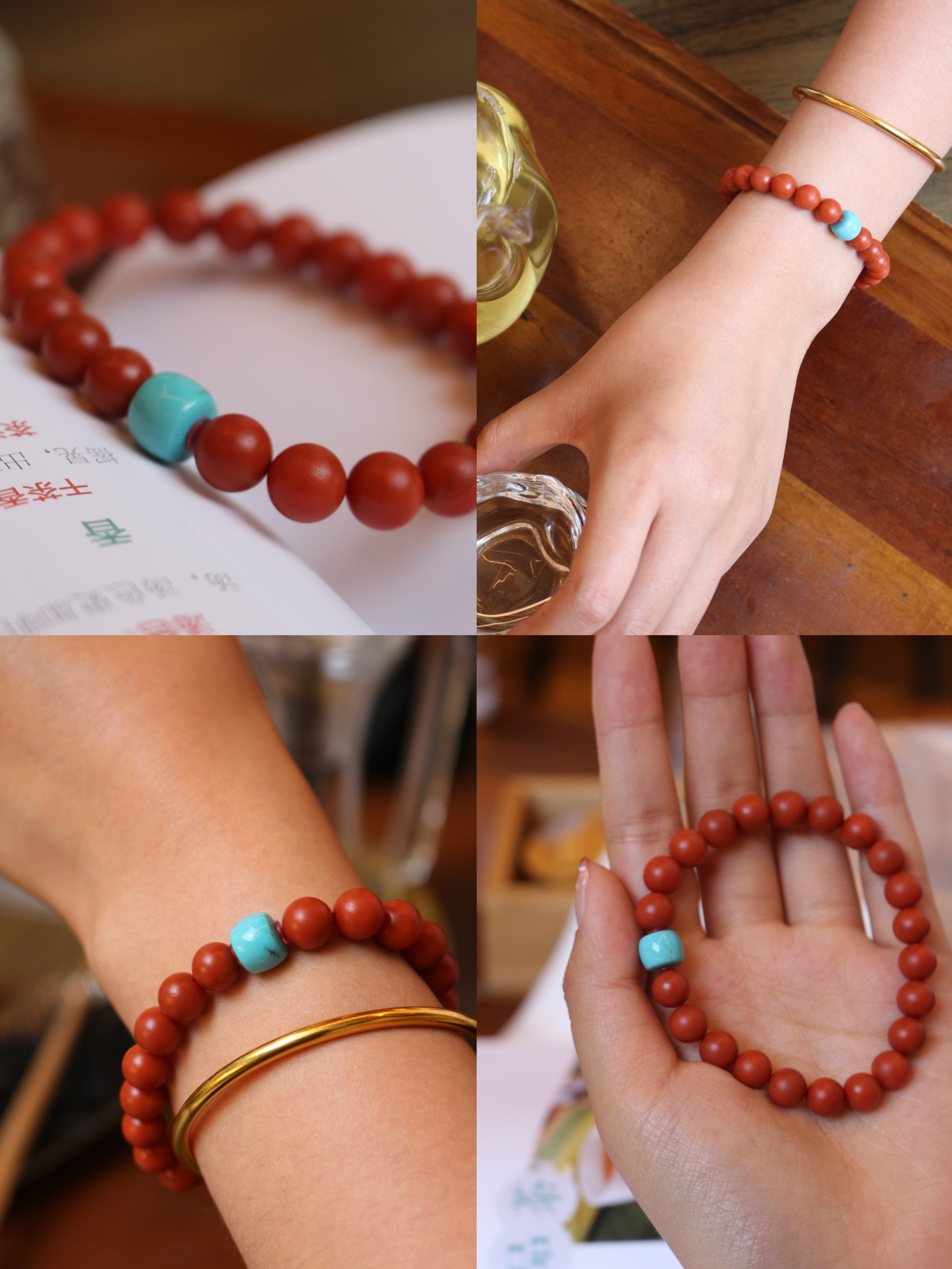 【满色满肉苹果珠手串5mm+ 带绿松石】