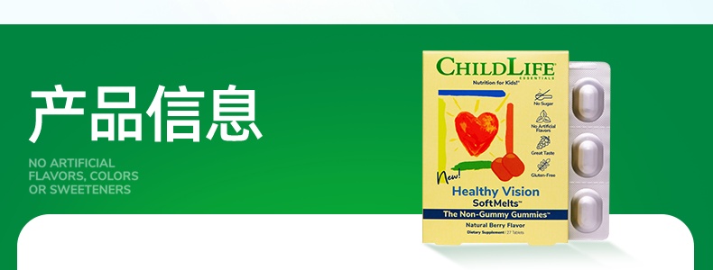 【保税】美国 童年life(Childlife)护眼小布丁 27粒/盒 适合一岁以上儿童