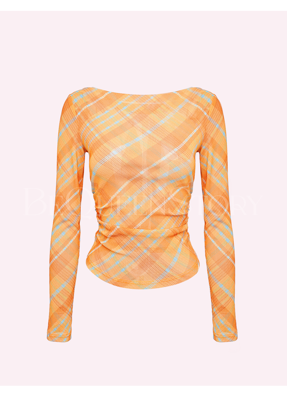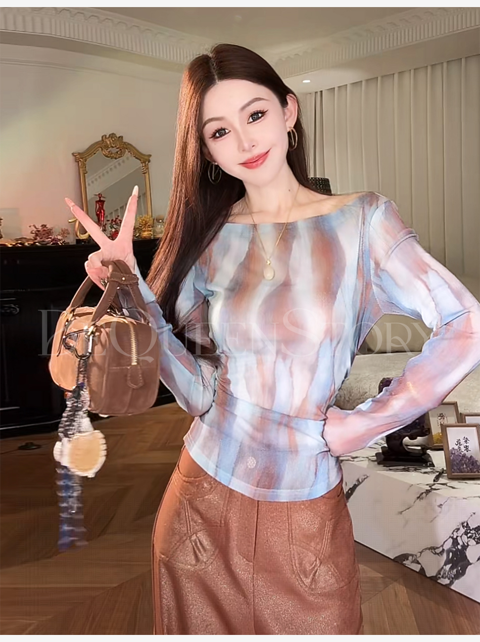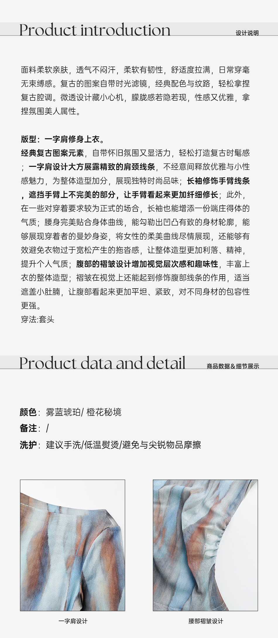 余潇潇【自由画报】时尚复古拼接褶皱遮盖小肚腩一字肩修身上衣