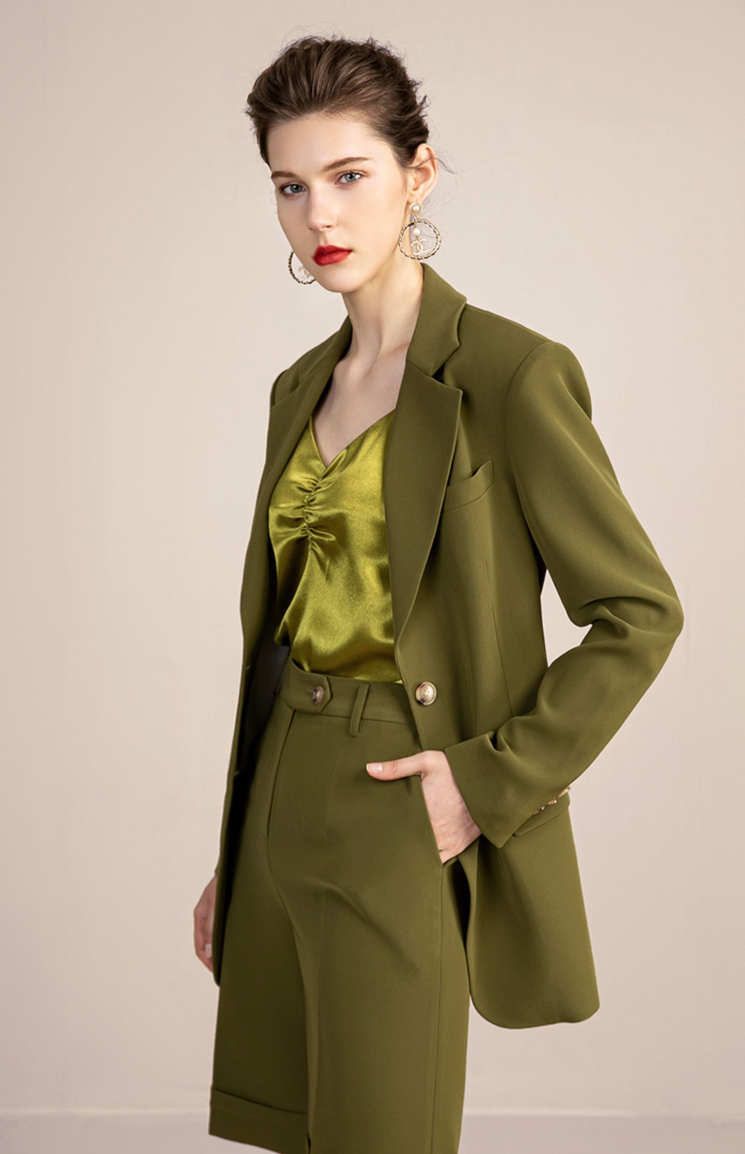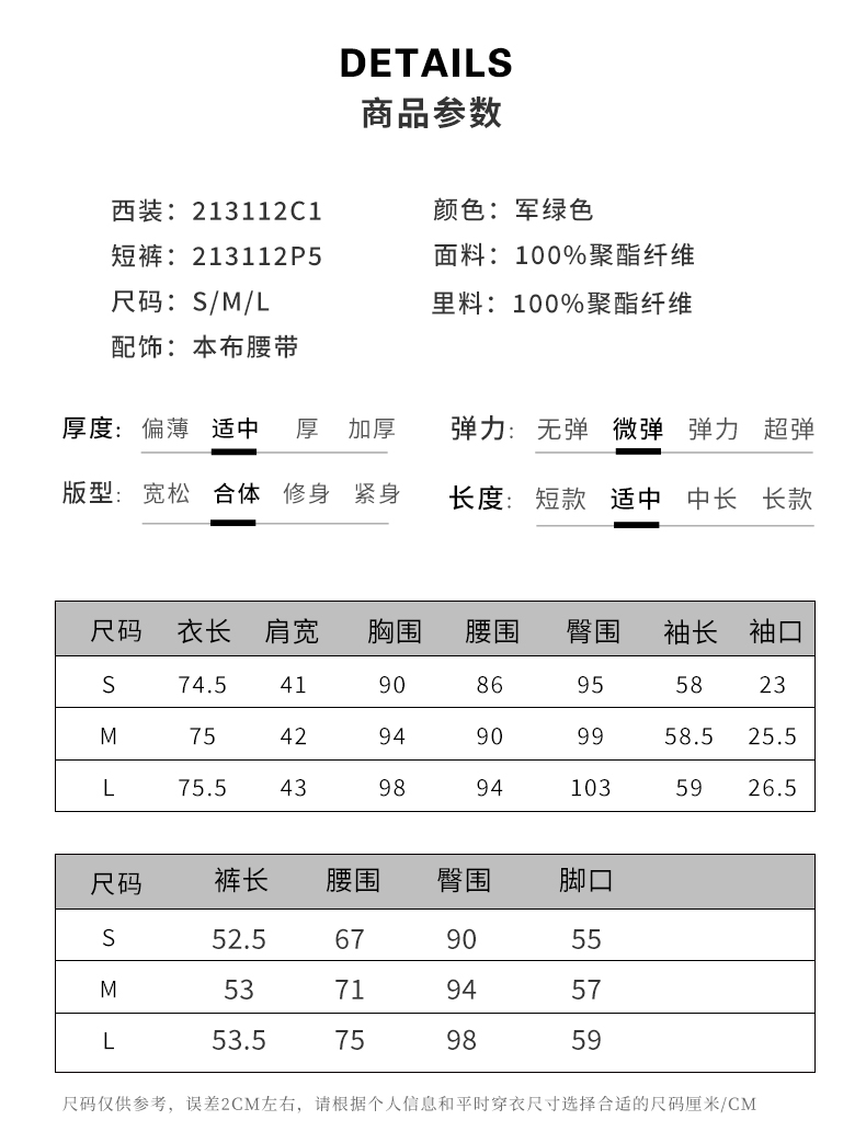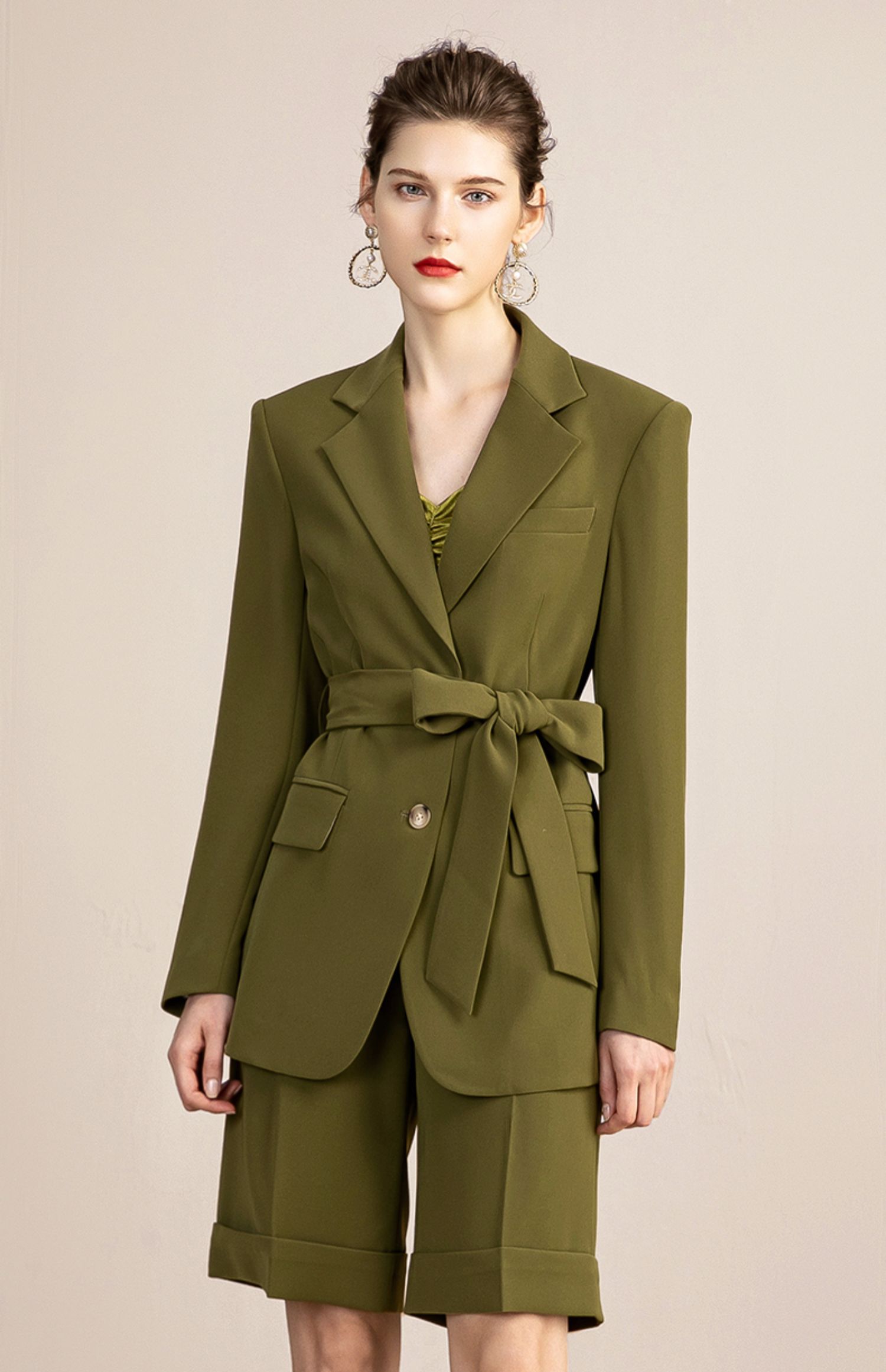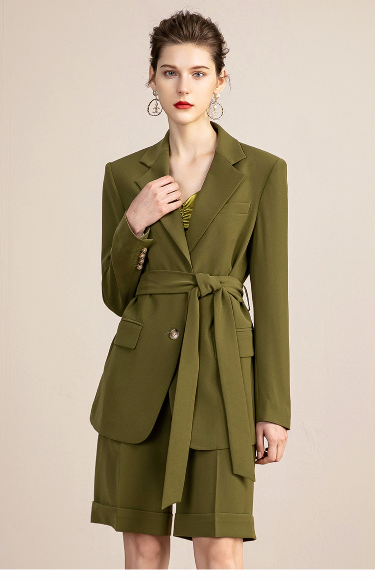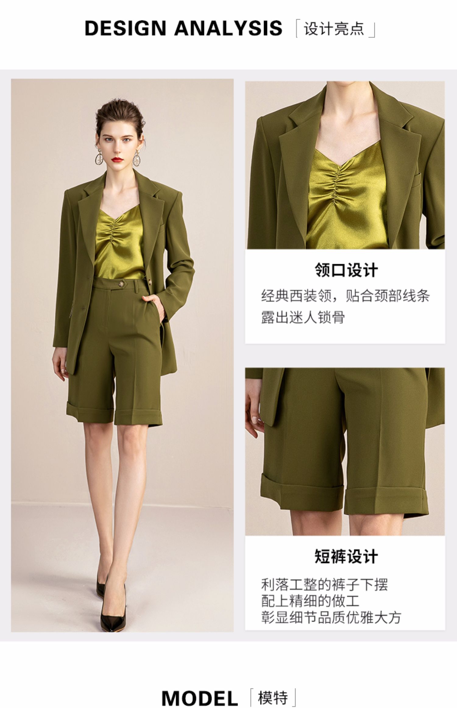 IWY/军绿色高端商务西装短裤正装女设计感时尚职业套装气质工作服 213112C1+P5