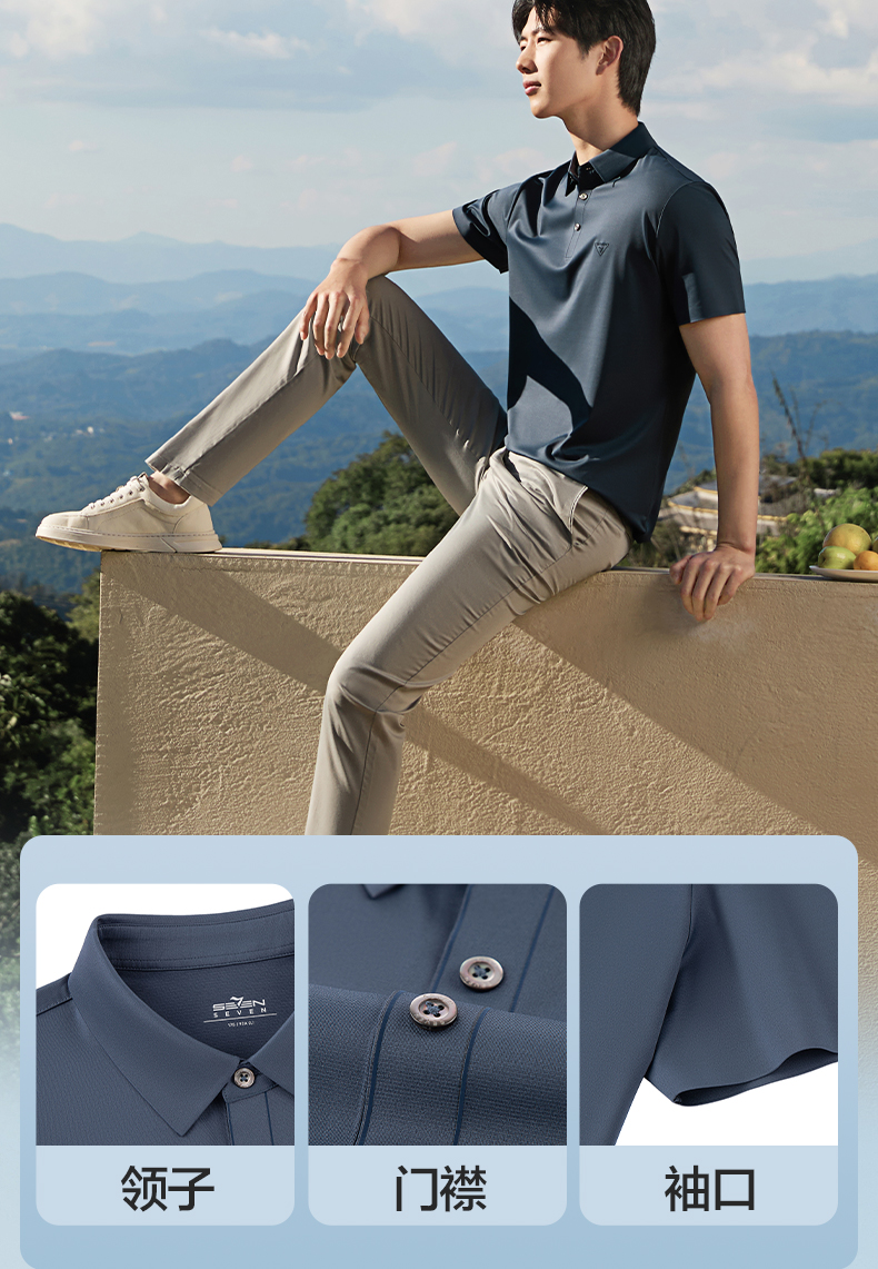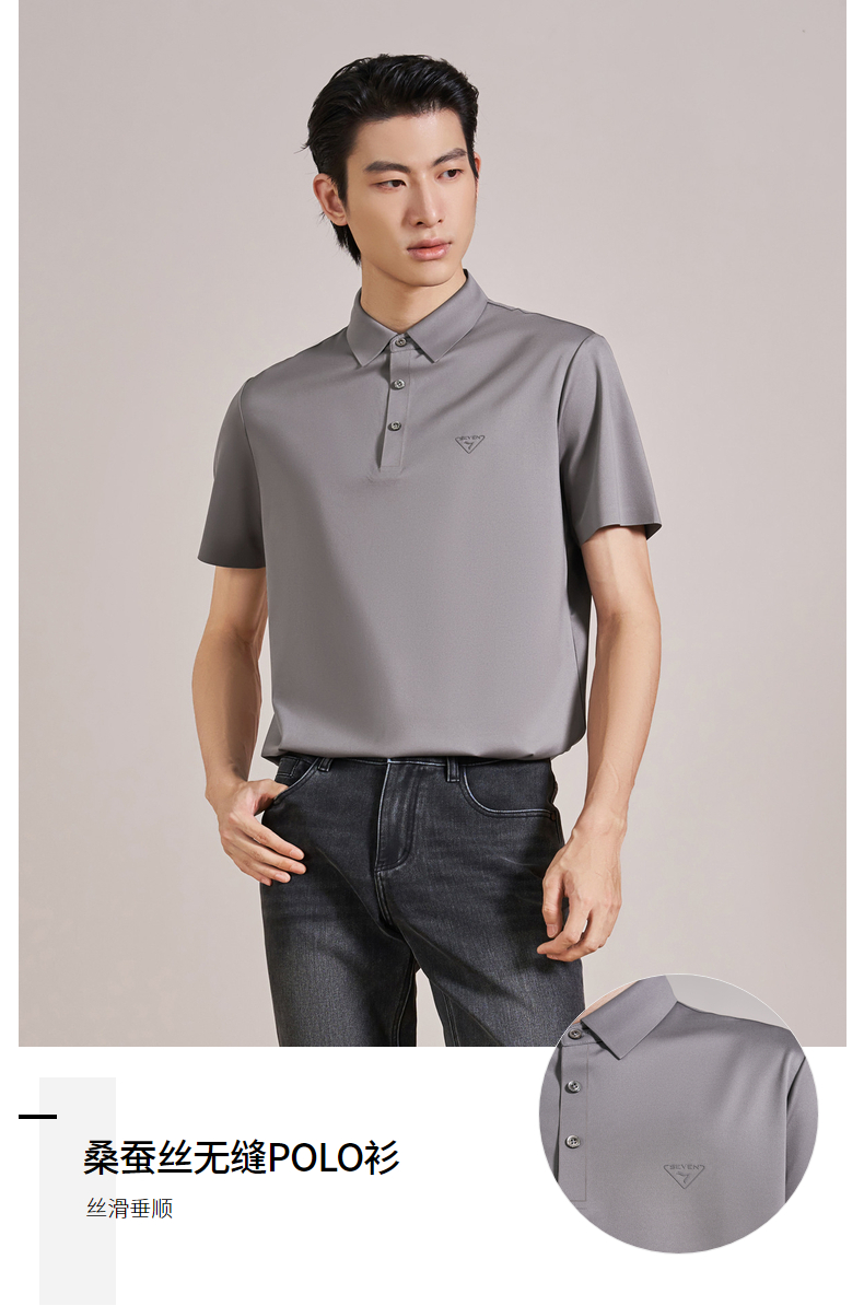 【无缝/桑蚕丝】柒牌男装2026夏季新品柔软垂感弹力短袖POLO衫 130T70330