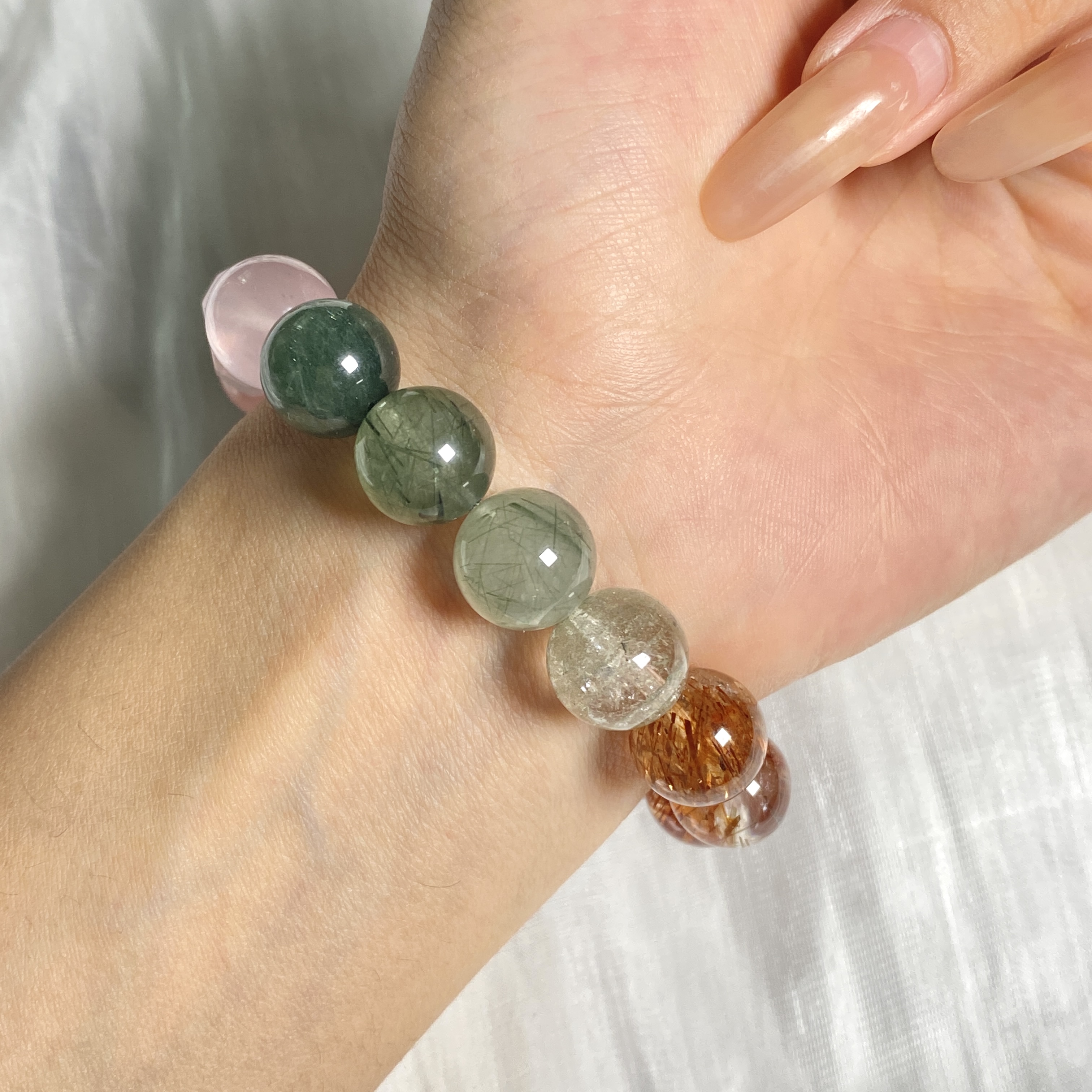 品名:雅典娜花园·彩发多宝手串 12mm 材质:粉水晶、月光石、红胶花、黑金超七、太阳石、绿发晶、绿幽灵 发货地:江苏连云港 物流信息:默认中通快递,不接受指定快递。除港澳台不发货外,全国包邮。 关于售后: 不影响二次销售,支持七天无理由退换货,运费自理。 非人为原因损坏,925银配件3个月质保,合金类配件1个月质保,换新或免费维修 温馨提示: 1.避免磕碰 2.不接触化学物品、不泡水 3.避免高温高热的环境, A保养方法:手串佩戴时间久了,咱们可以拿一瓶养护油,第一滴在手心搓匀,把玩,会慢慢改善这个现象哈! B长期不佩戴需密封保存,尤其是有银饰配件的饰品哈! 关于色差:因显示器,拍摄光线,角度不同存在些许色差,请以收到的实物为准,色差情况属正常情况 关于尺寸,克重:产品数据为手工测量,存在微小数值误差,请以实物为准,敬请谅解! |