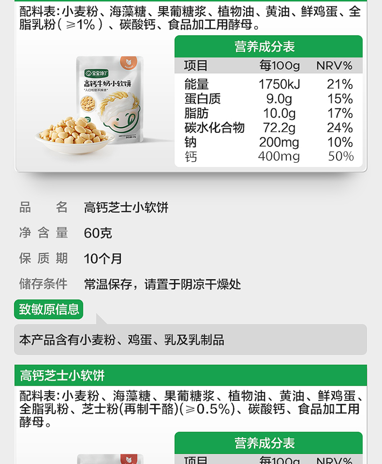 【宝宝馋了】高钙牛奶/高钙芝士小软饼 松软易溶 送10月+婴幼儿食谱