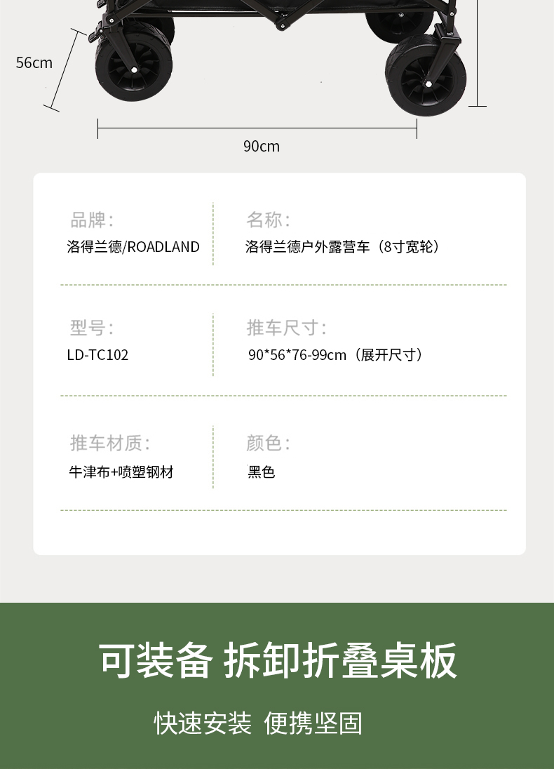 洛得兰德8寸宽轮露营车LD-TC201黑色
