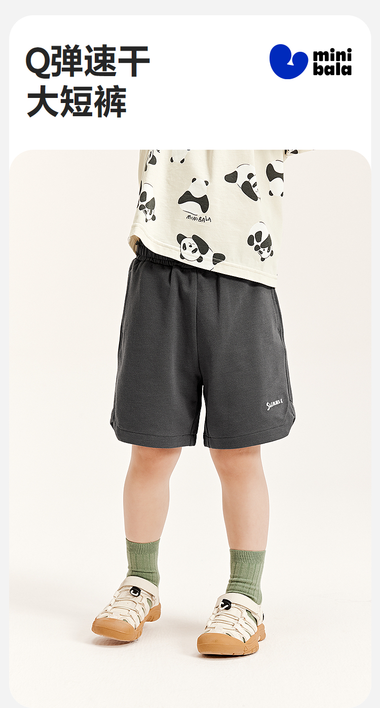 迷你巴拉男童夏吸湿速干裤子宽松透气弹力不粘腿运动短裤