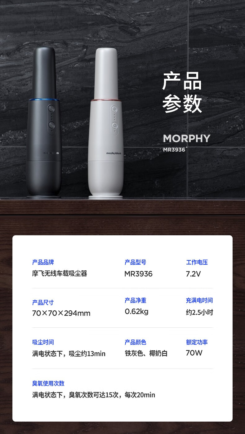 【摩飞车载吸尘器MR3936】强劲核心电机 澎湃吸力 杀菌除味