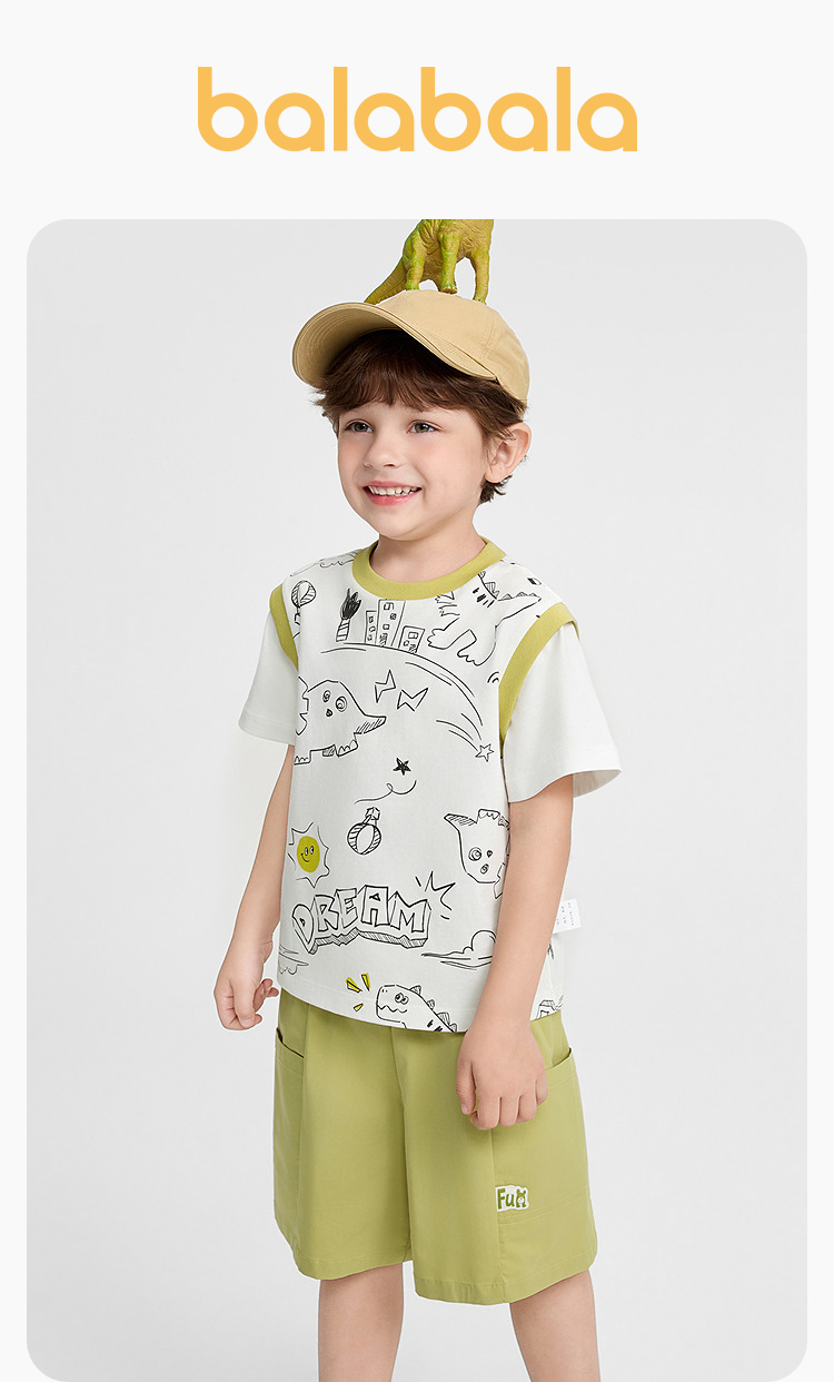 巴拉巴拉男童短袖套装儿童两件套2026新款夏时髦舒适假两件上下装