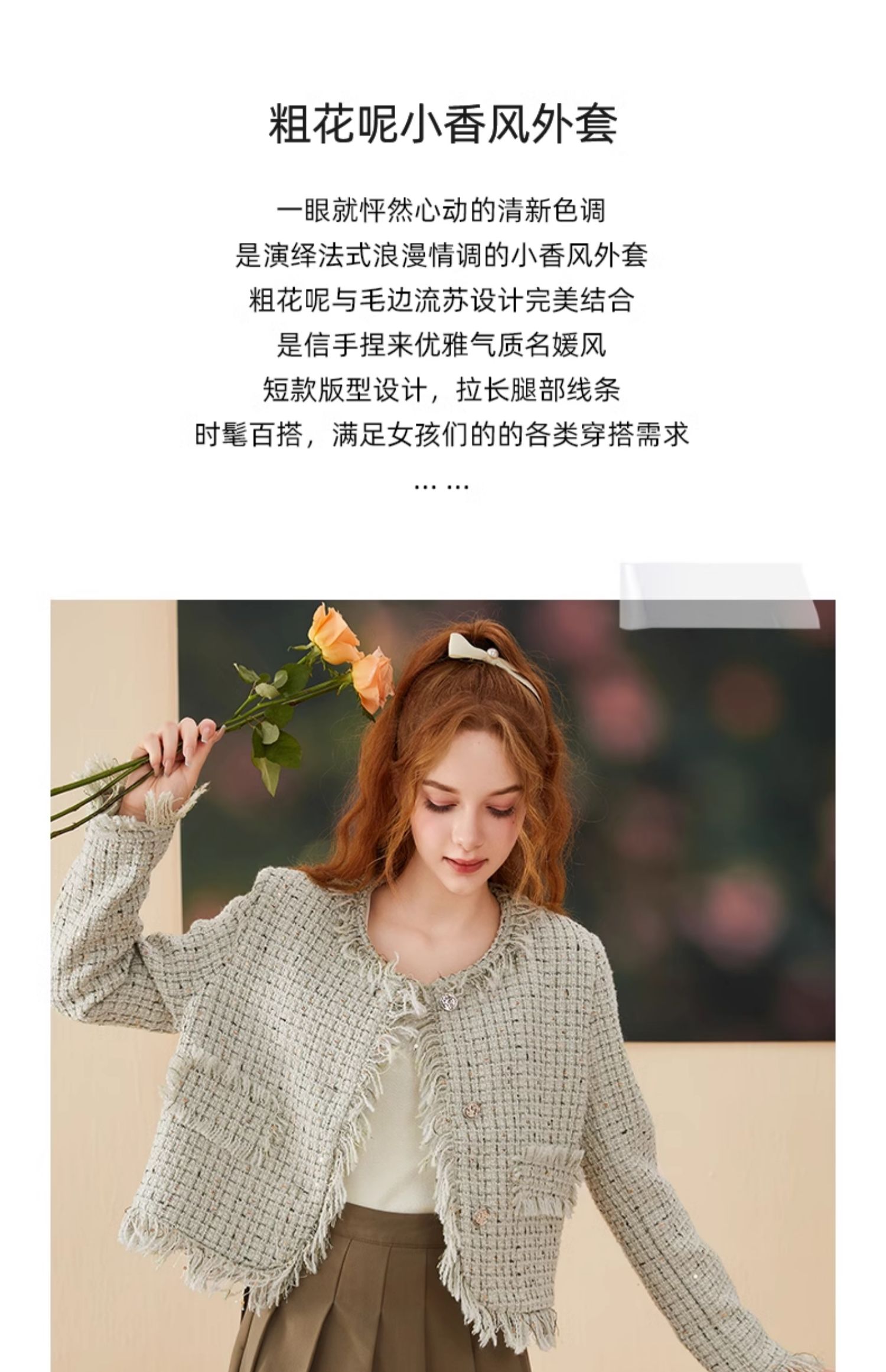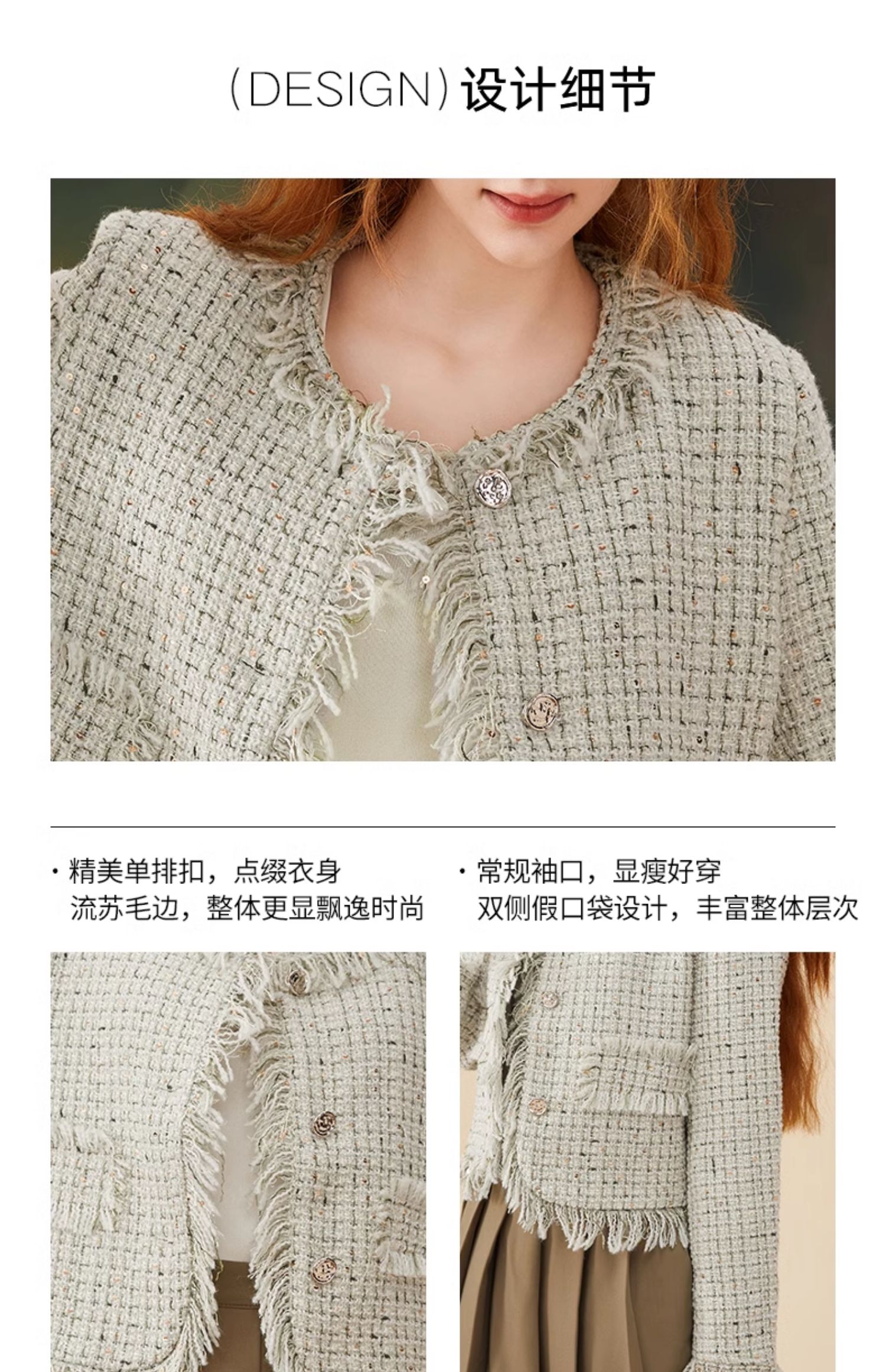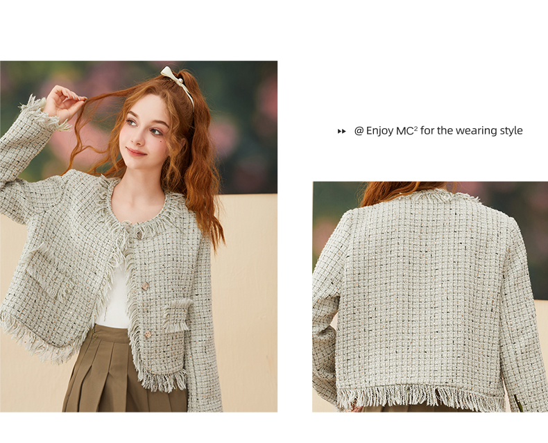 mc2流苏粗花呢小香风外套女2024新款时尚圆领亮片气质高级感上衣