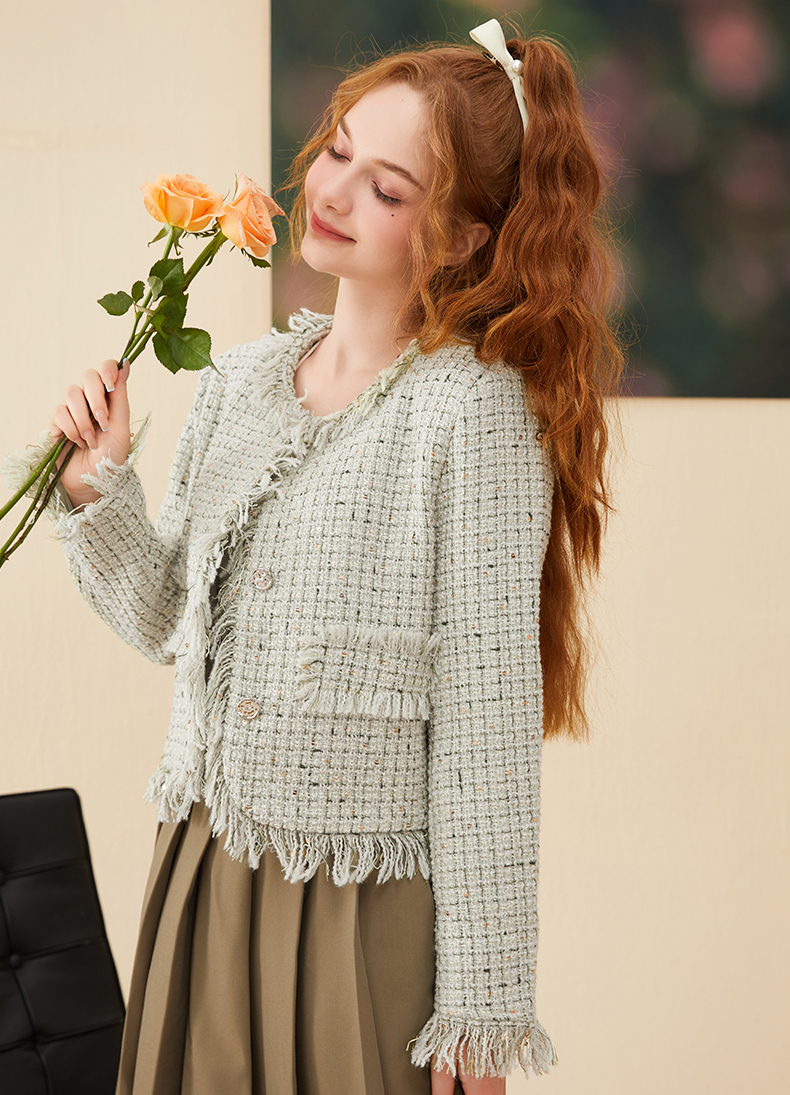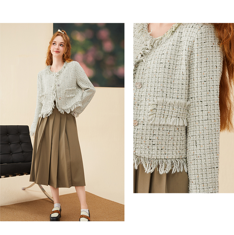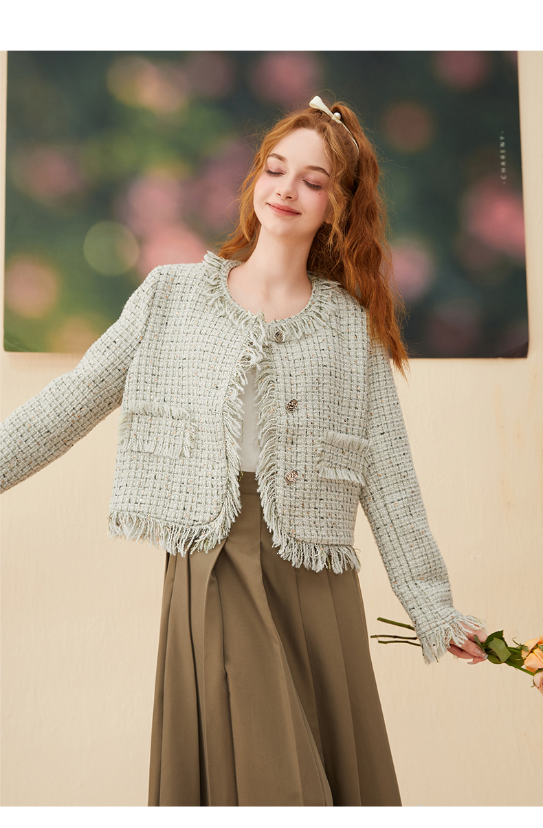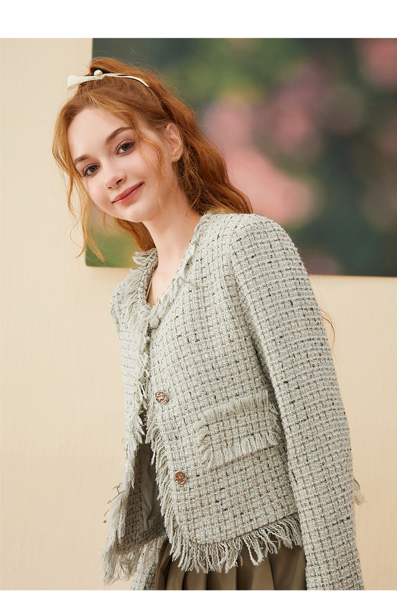 mc2流苏粗花呢小香风外套女2024新款时尚圆领亮片气质高级感上衣