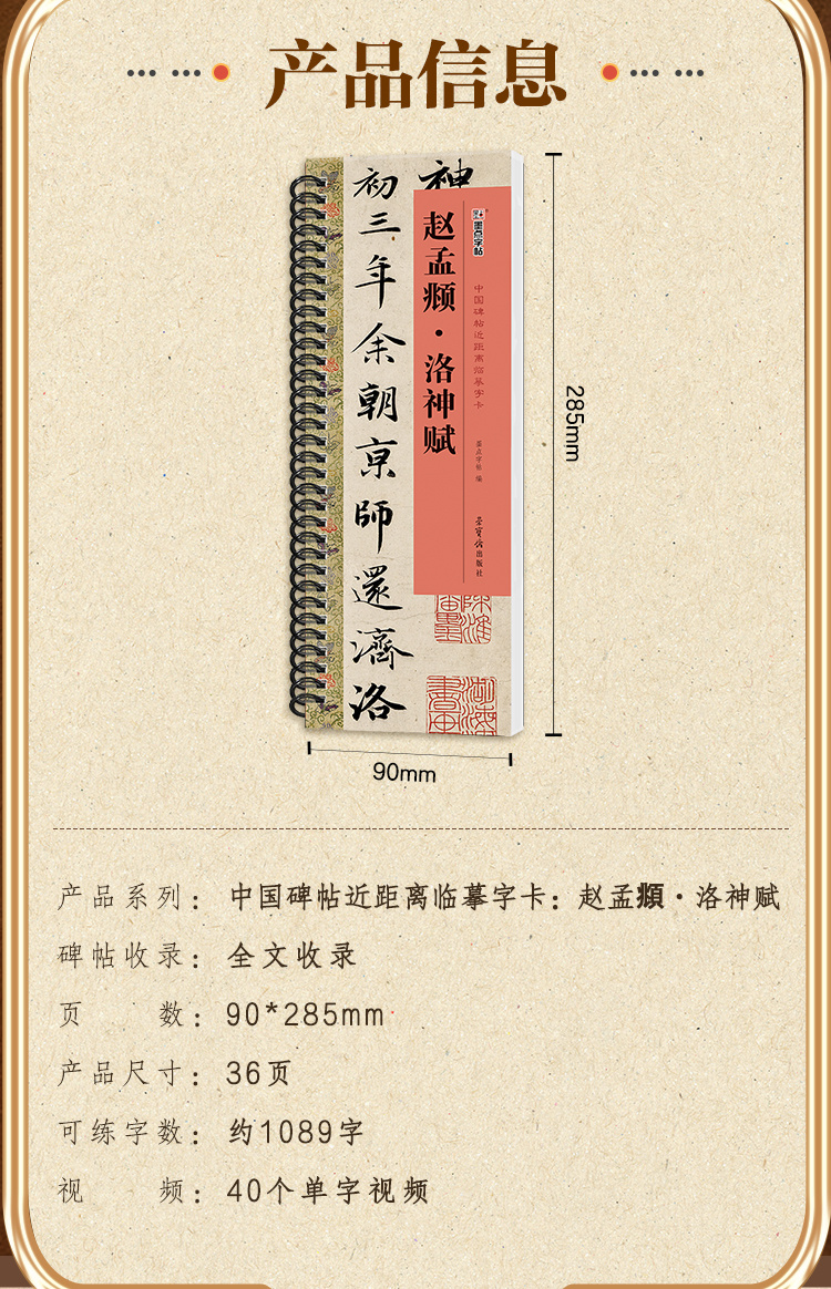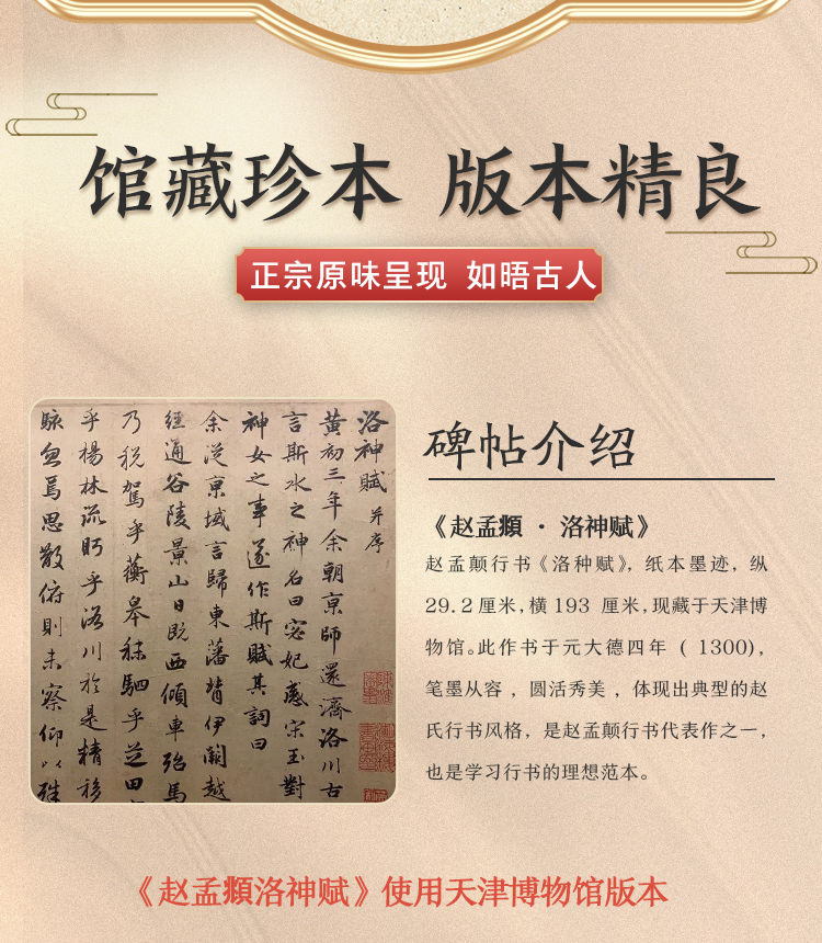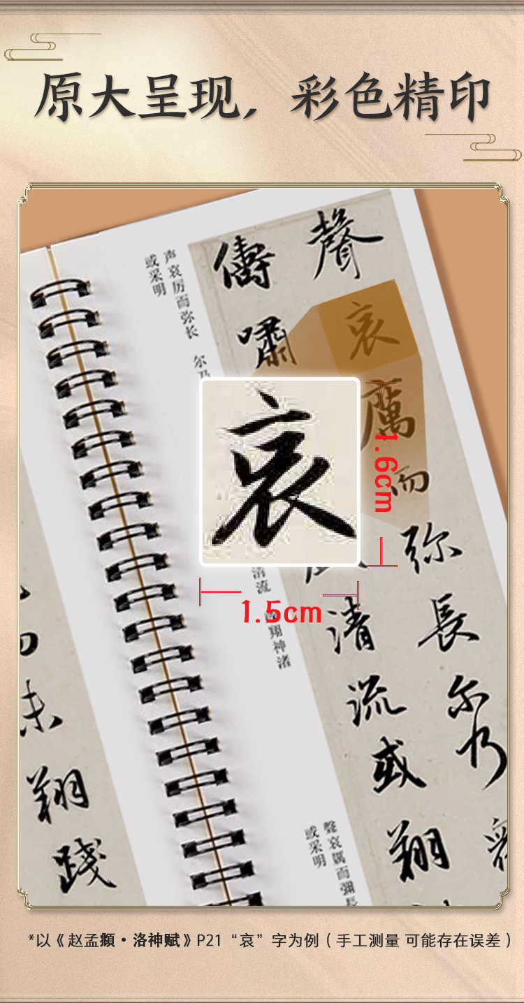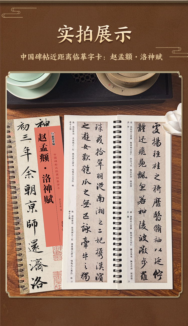 赵孟俯字帖行书 近距离临摹字卡赵孟頫洛神赋行书字帖墨点临摹本赵体洛神赋十三行初学者毛笔书法字帖毛笔赵孟俯碑帖行书字帖