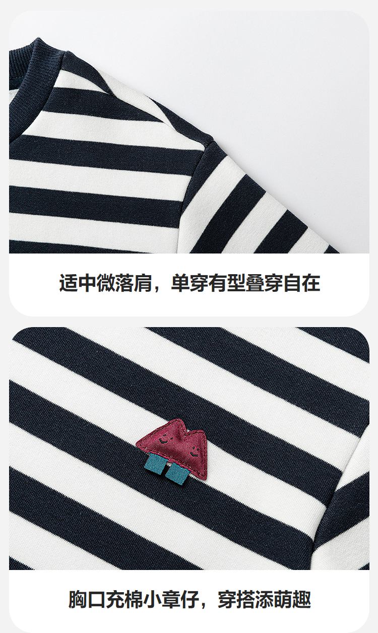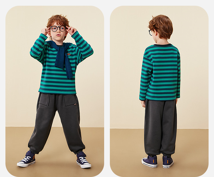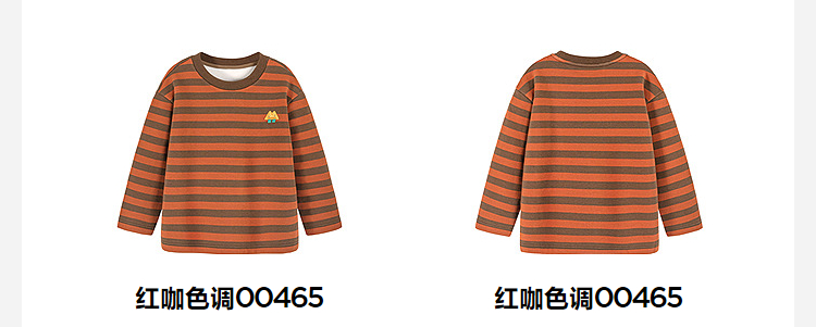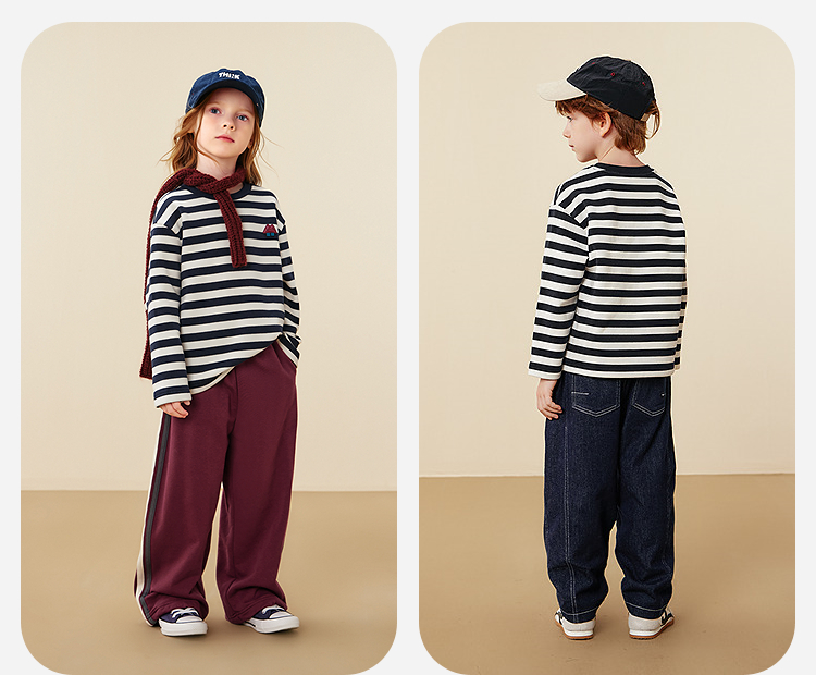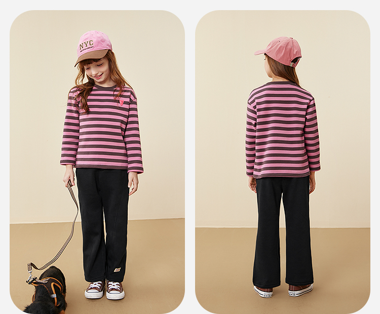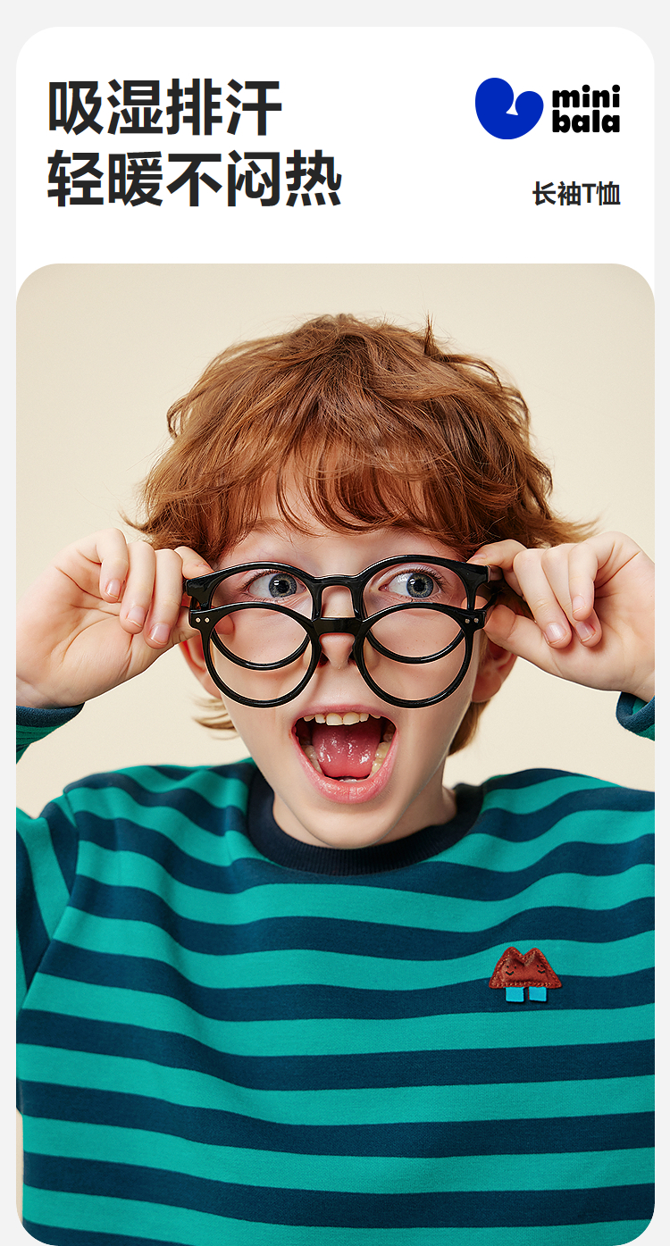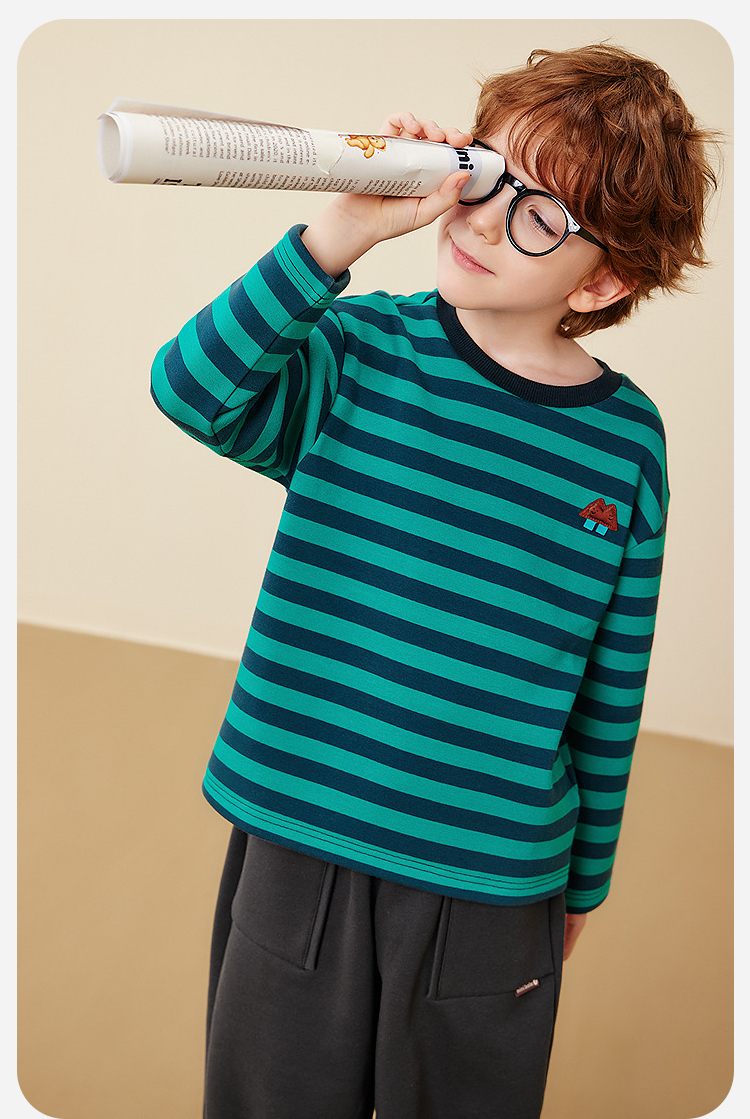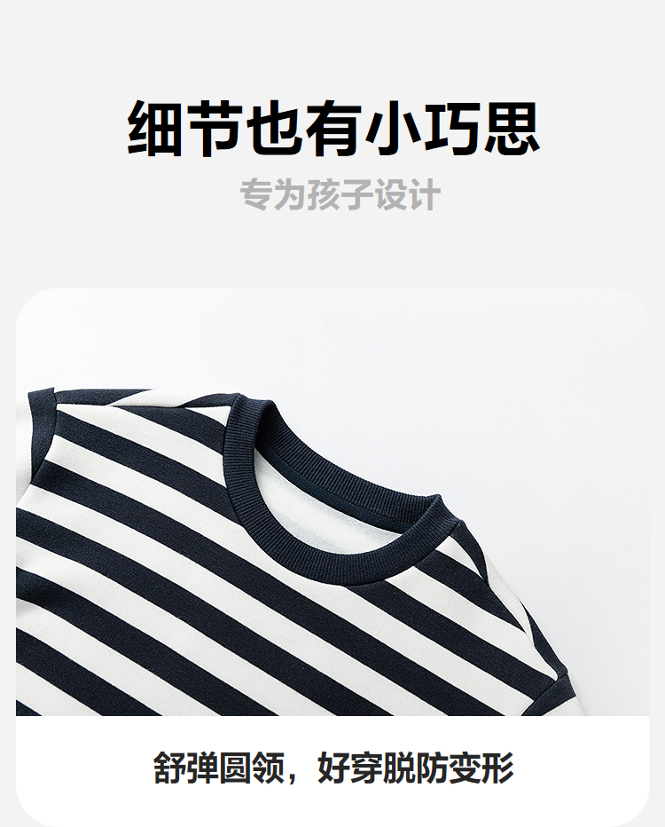 迷你巴拉男女童T恤吸湿排汗内里抓绒儿童条纹长袖2025冬新款
