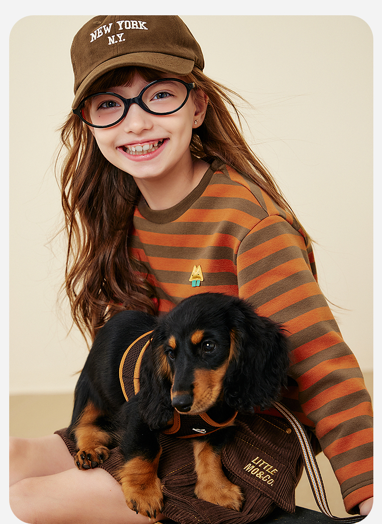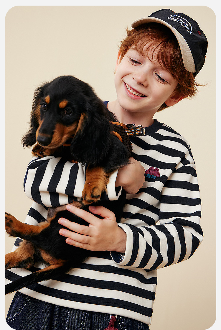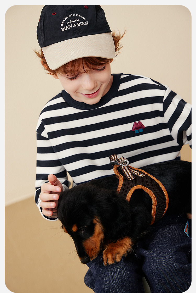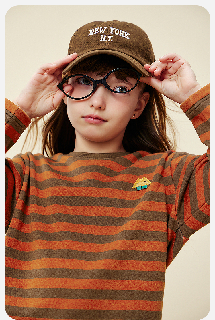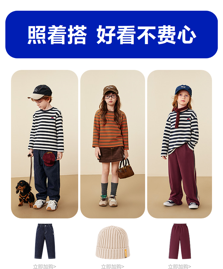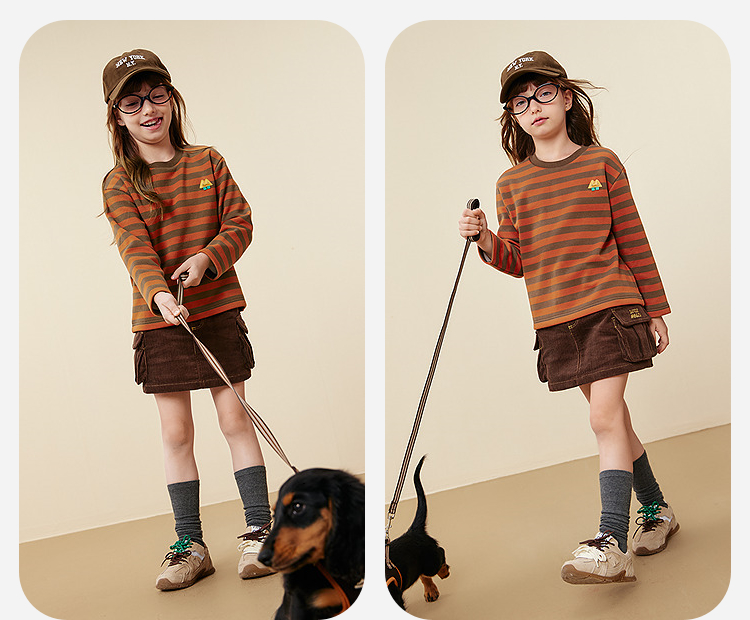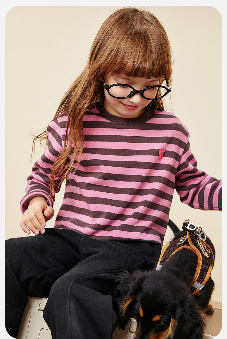迷你巴拉男女童T恤吸湿排汗内里抓绒儿童条纹长袖2025冬新款