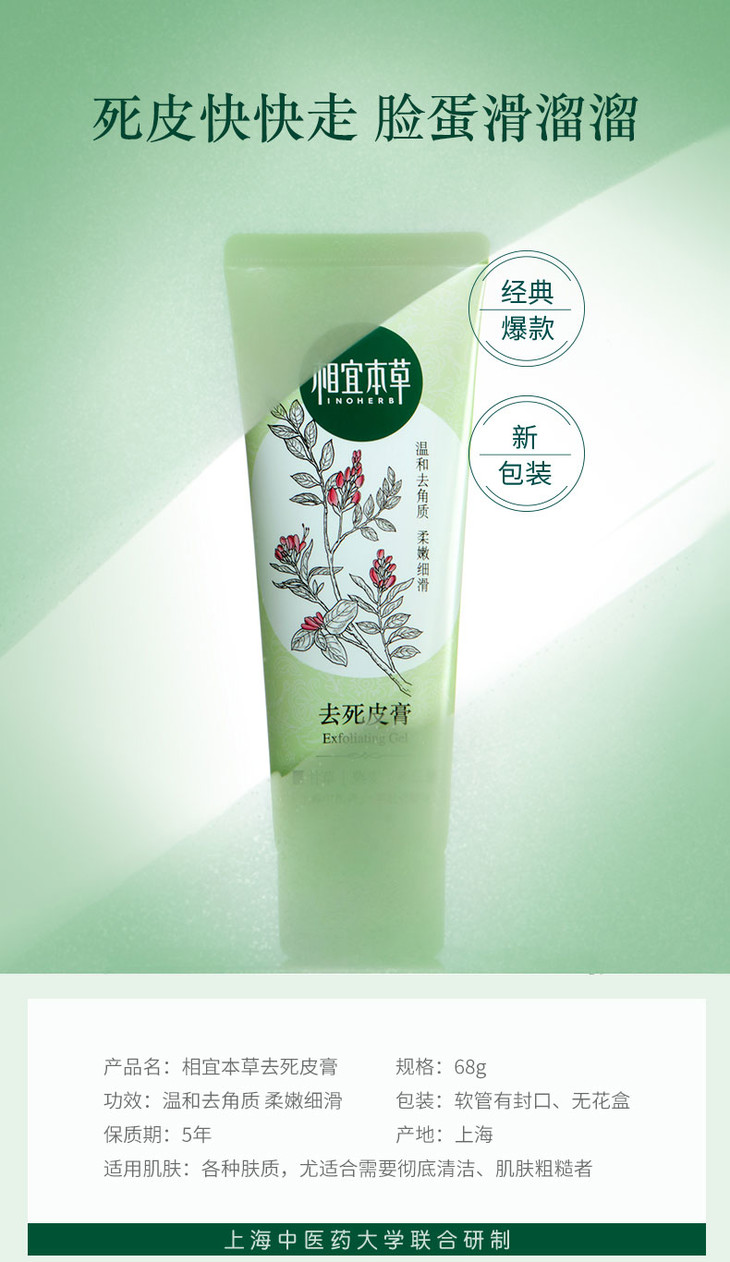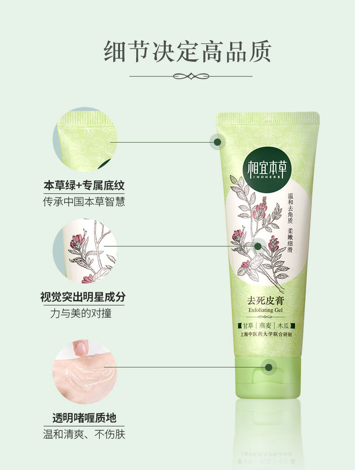 相宜本草温和去角质面部身体手足啫喱女保湿清洁磨砂膏男