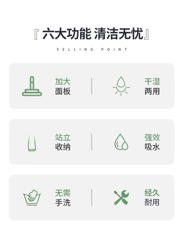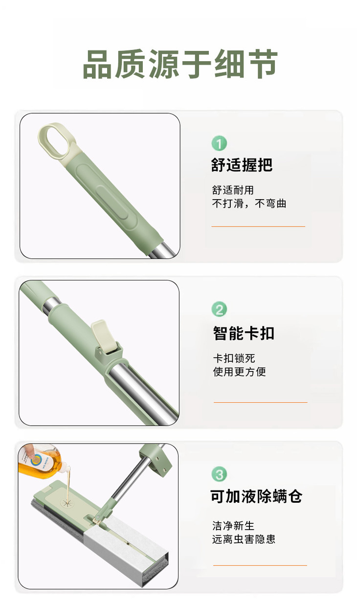 🔺一把拖把 可以直接加入抑菌的地板清洁液 边拖边消毒 不需要额外往水里稀释各种清洁液体; 还可以往上夹抹布或用过的洗脸巾 做到二次利用 除尘粘除毛发相当ok;