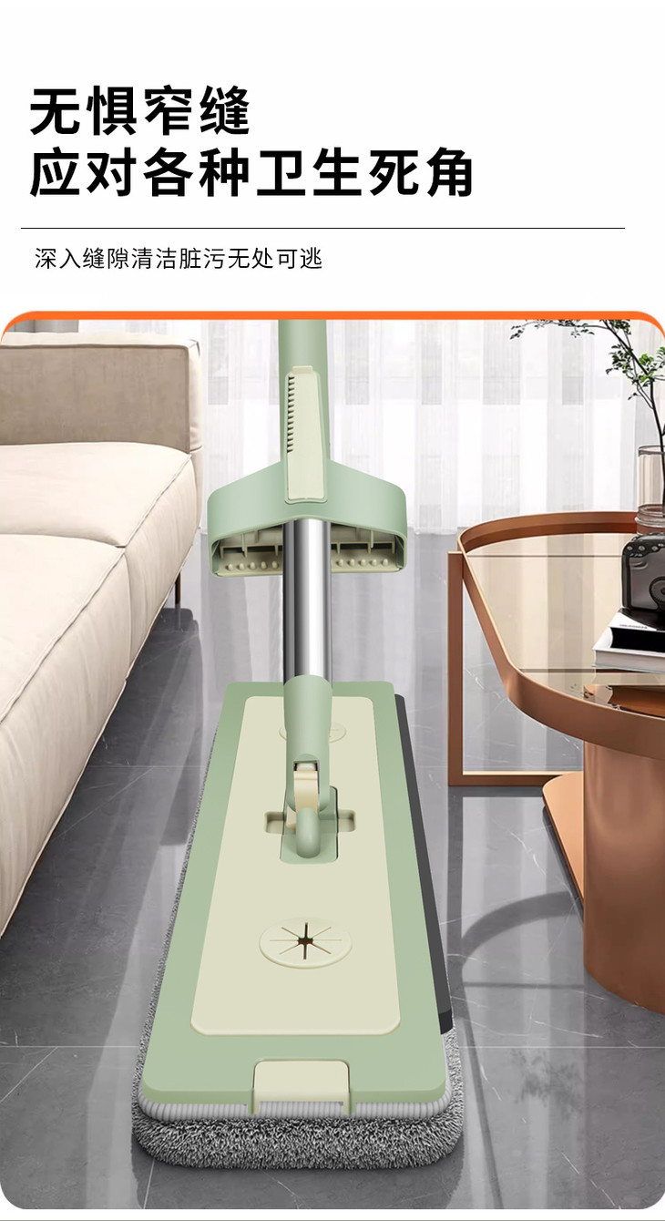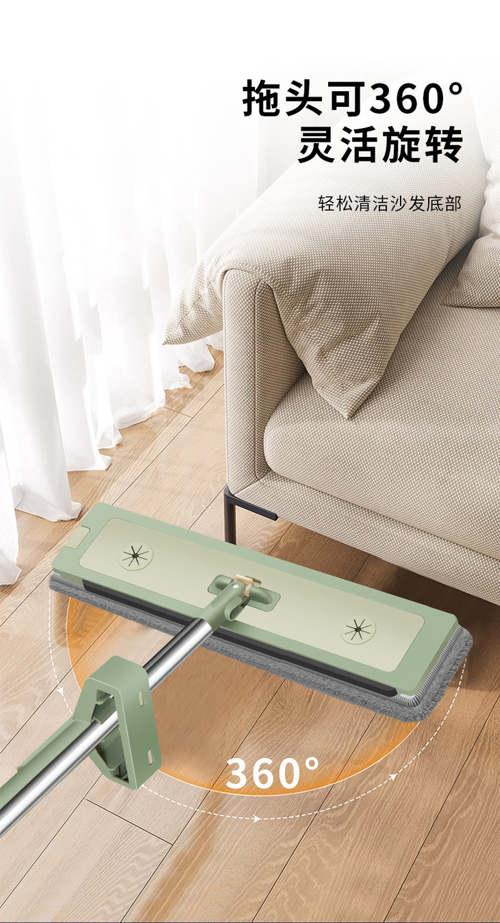 床底深处可去,沙发底下也好拖 一些转角缝隙容易忽视的凳子腿下 可以360°灵活旋转的拖头轻松围绕桌角凳腿儿一圈转动清洁 探入一切死角,把沟沟缝缝都拖得干干净净