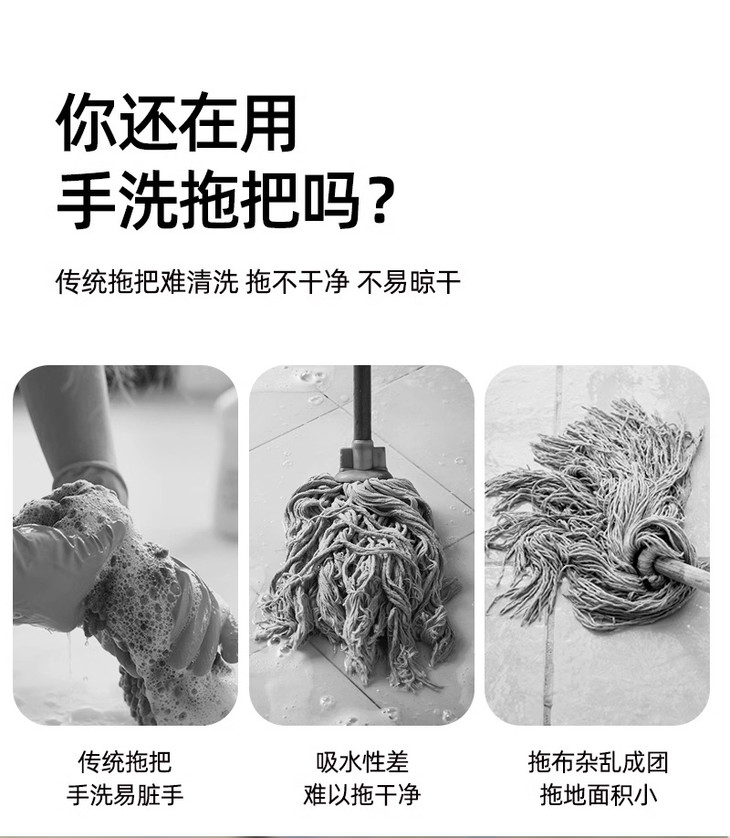不好用的拖把 地面洒了半碗汤,拖过之后却还残留有油油腻腻湿哒哒的水渍 需要清洗拖把或伸长拖拖床底的时候,拉杆却推拉卡顿不好用 一根拖把用了好多年,拖布发臭洗不出来 不那么合适的工具,让拖地变得双倍费心力,地却未必更干净❌