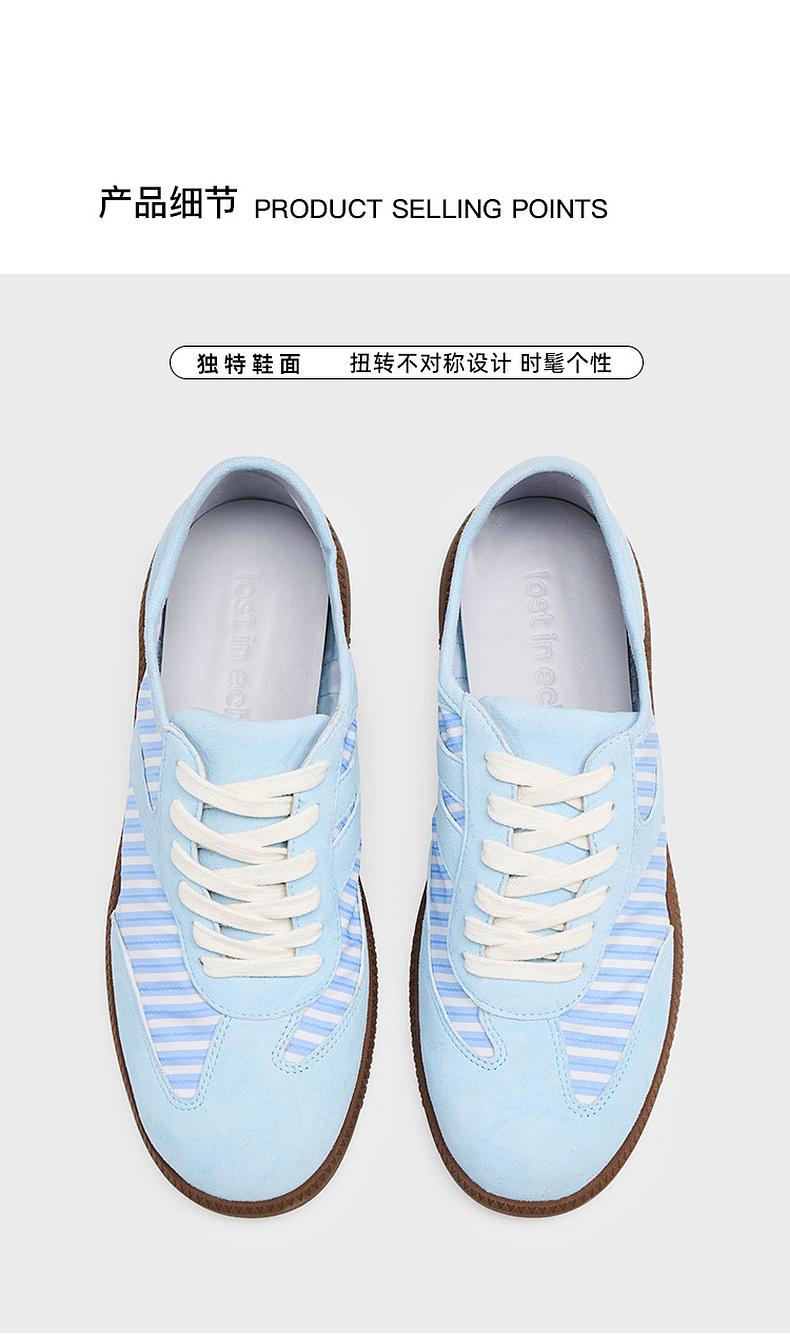 [福利价]lost in echo2025春夏新款条纹轻薄透气休闲厚底板鞋德训鞋T头鞋