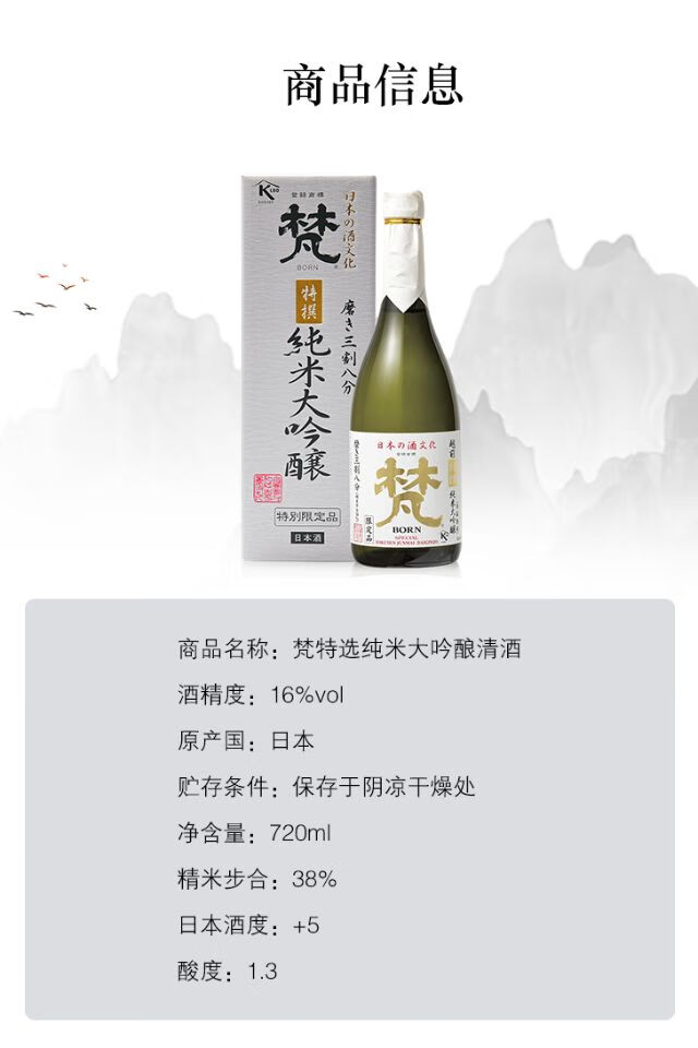 【锦高乐金】梵 特选纯米大吟酿 三割八分 720ml
