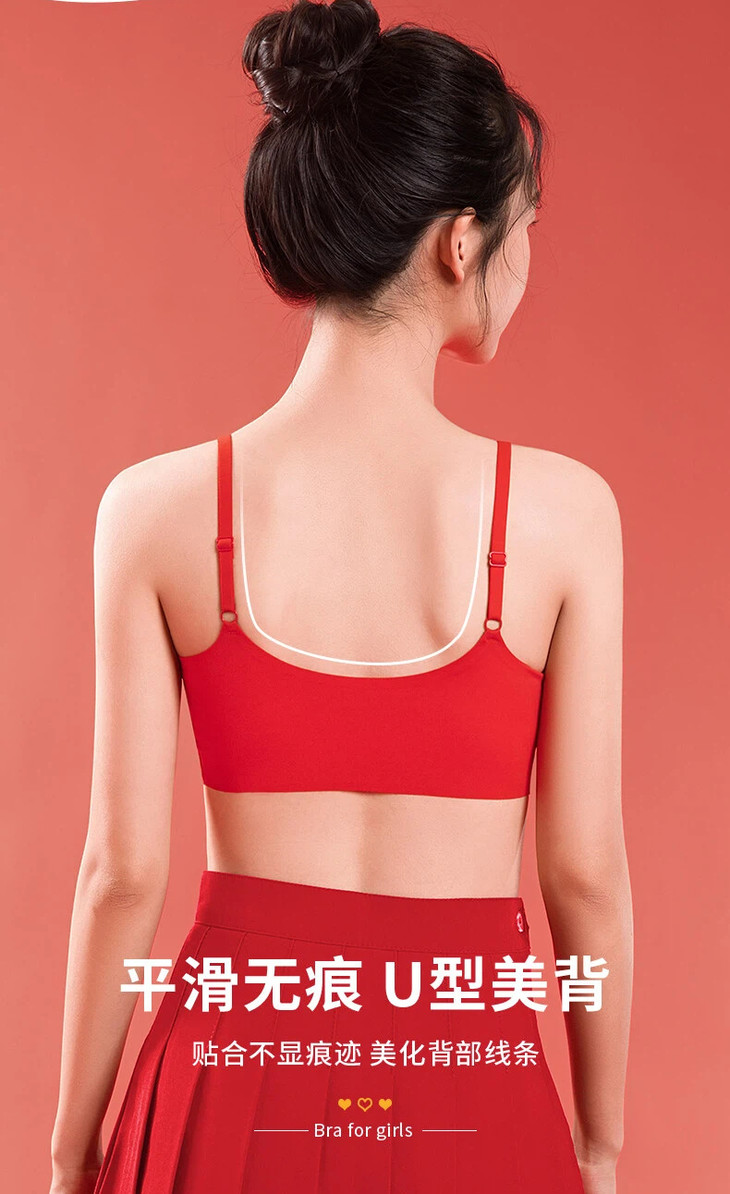 ②二三阶段宽肩带款,专为12~18岁少女设计,无钢圈+薄垫 罩杯相对更深,包容度更大,防凸点的同时,给胸部预留发育空间 杯垫热压固定,机洗不移位不变形