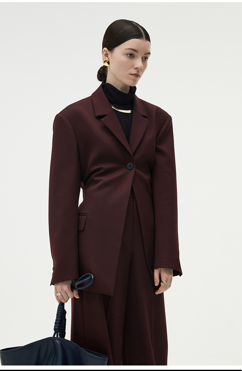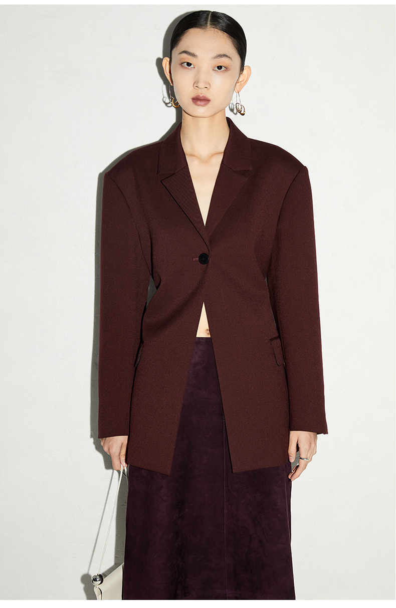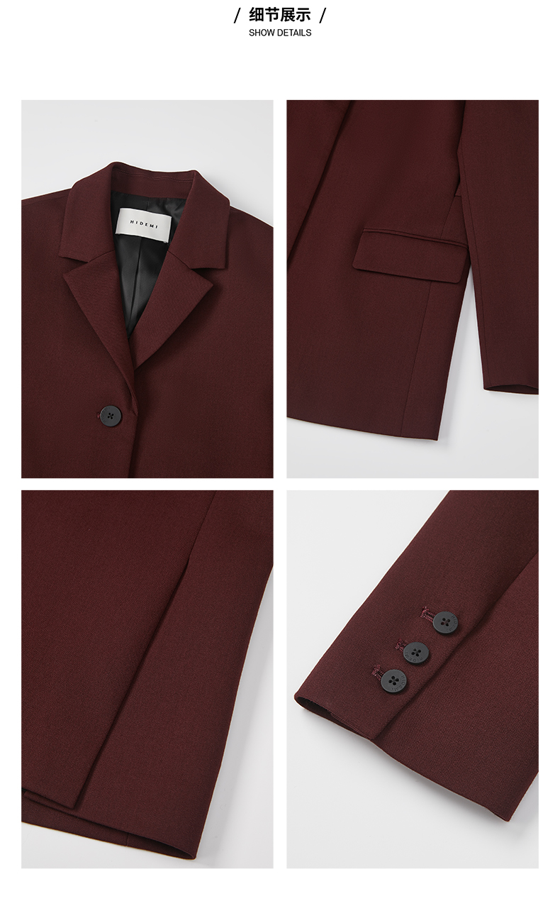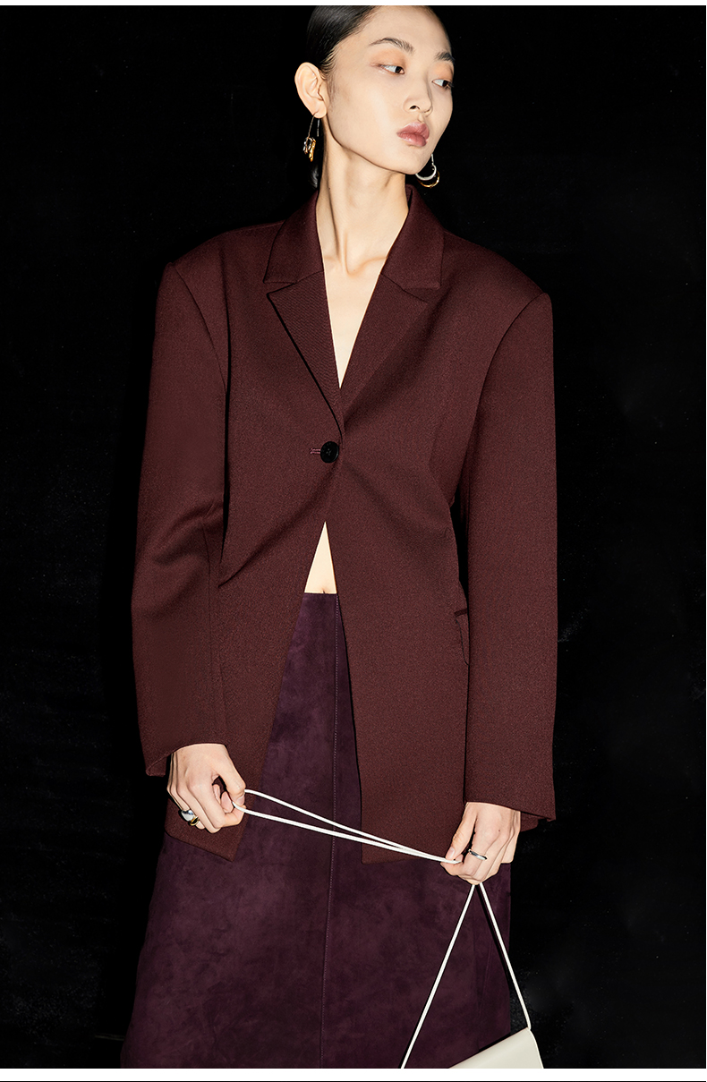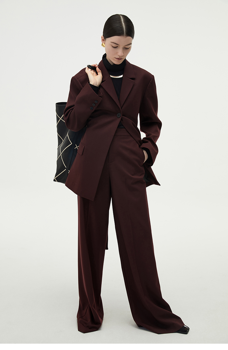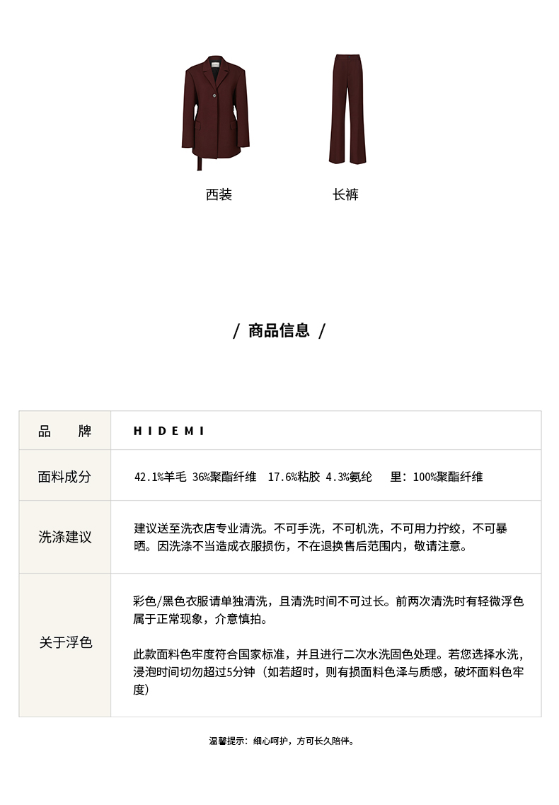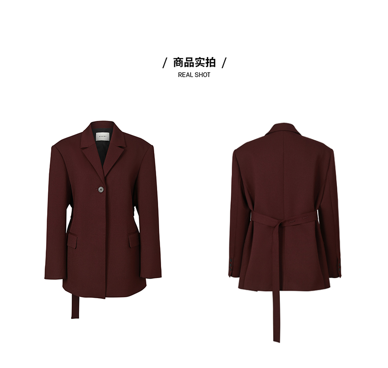 HIDEMI 酒红色一粒扣腰带式廓形西装套装 西装/长裤