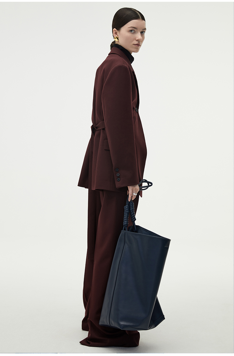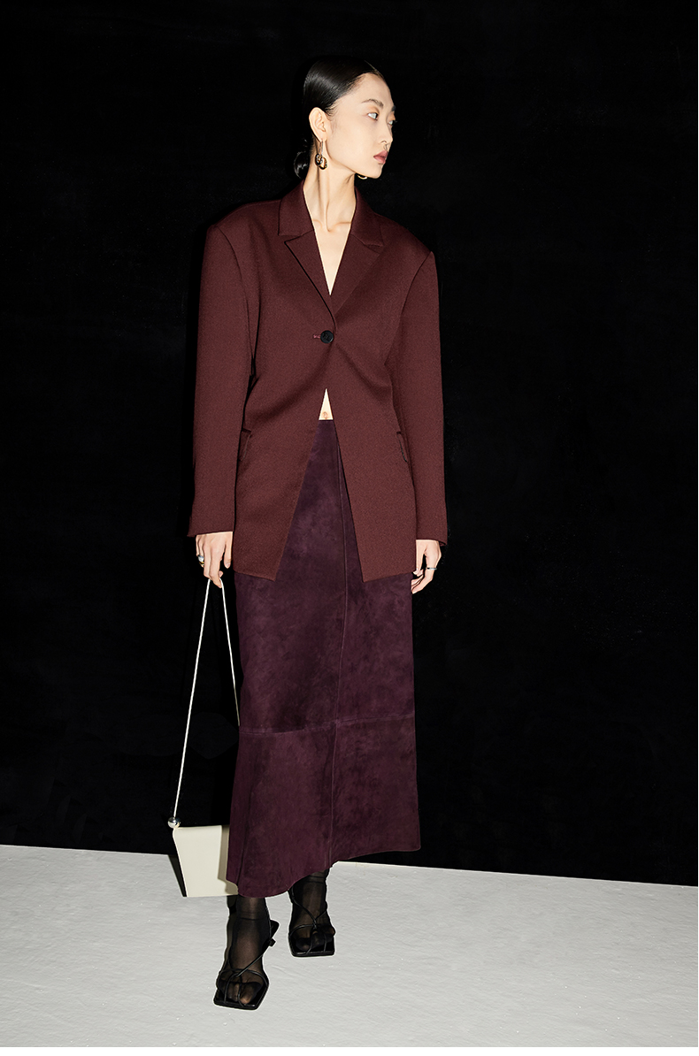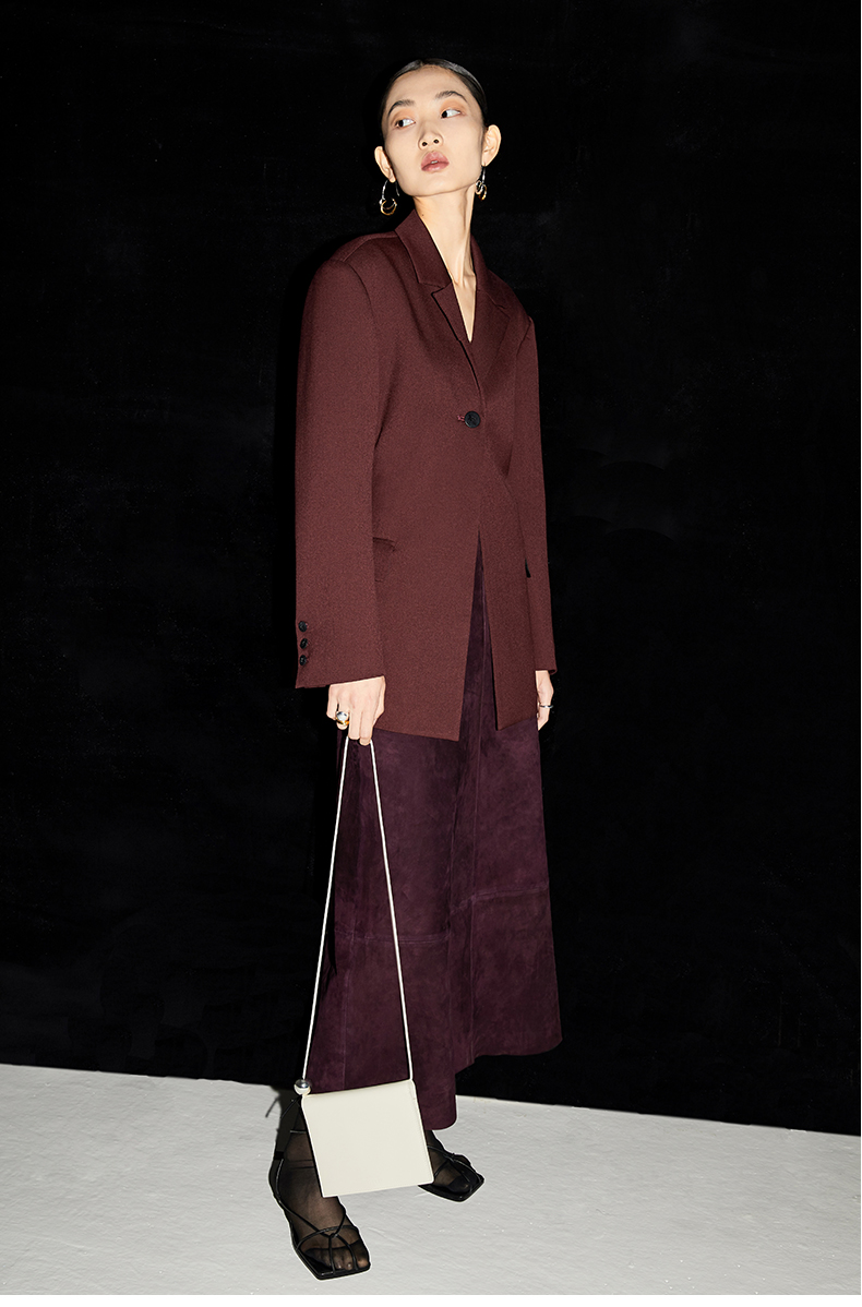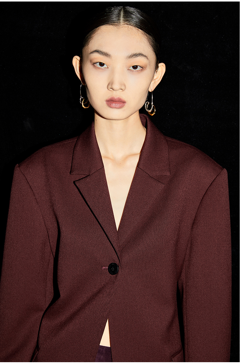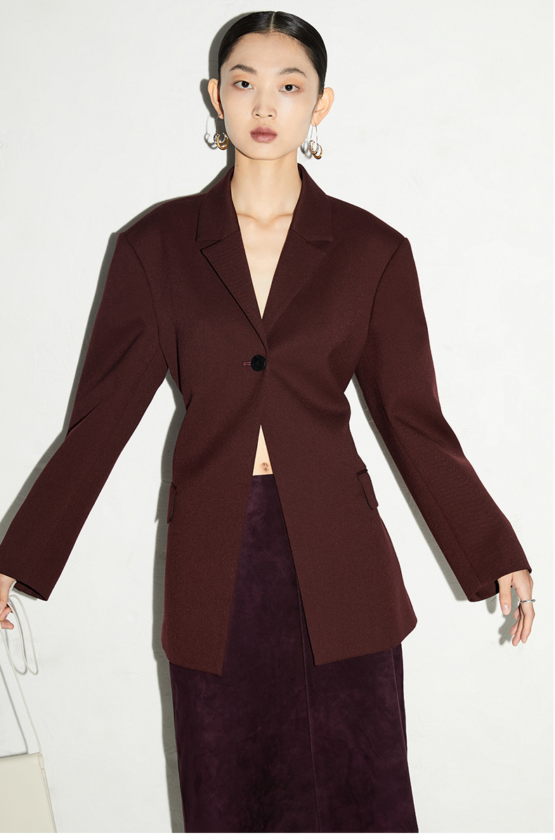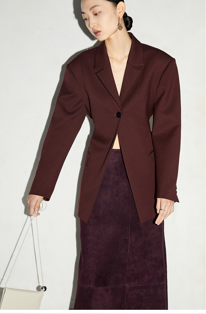 HIDEMI 酒红色一粒扣腰带式廓形西装套装 西装/长裤