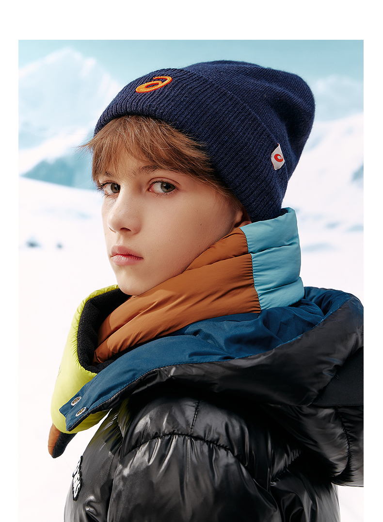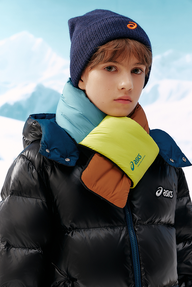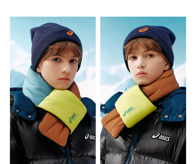 ASICS/亚瑟士儿童25年冬季交叉式撞色棉围巾轻薄柔软保暖舒适