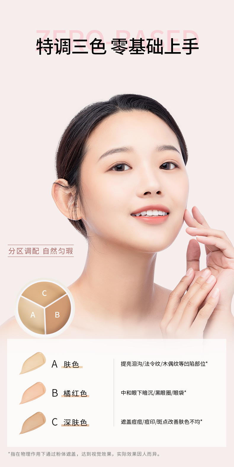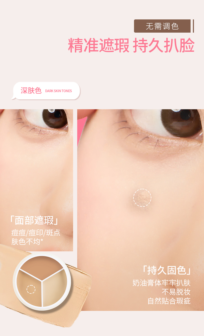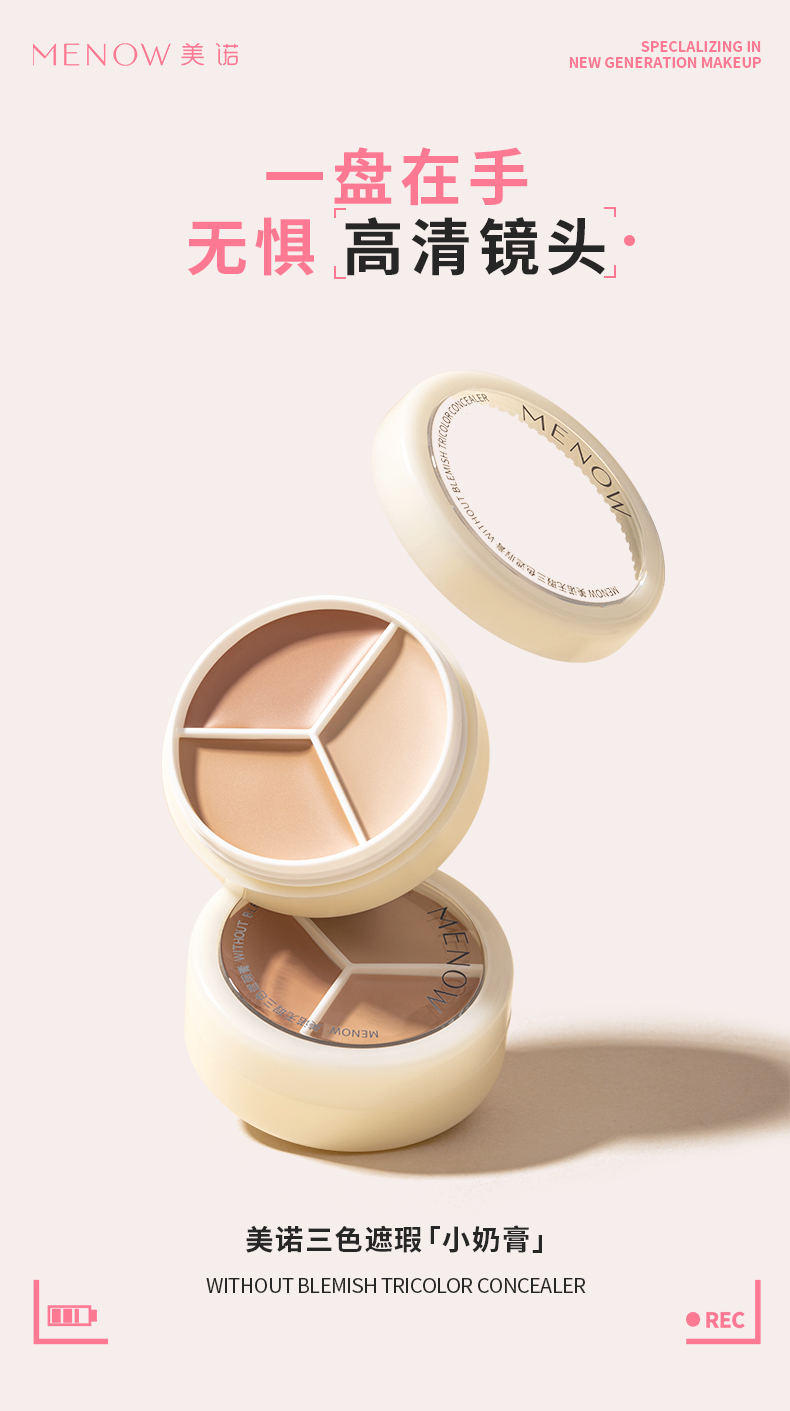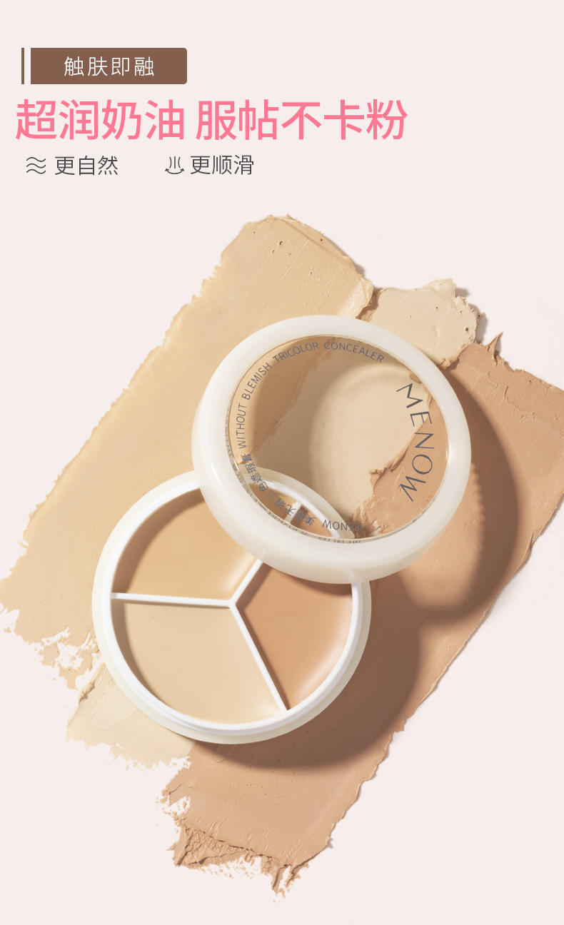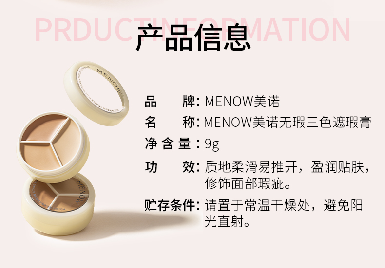 【MENOW】美诺三色遮瑕膏遮盖斑点痘印脸部修容黑眼圈遮暇盘