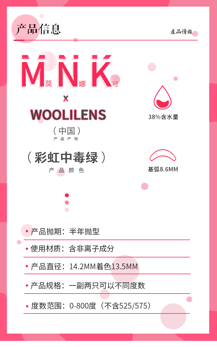 woolilens 半年抛 彩虹中毒绿 直径14.2mm着色13.5mm 商品图12