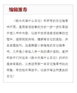 ●目录● n日记啊,我该怎样认识你?☆9 n1 日记,为什么非要写?☆10 n2 写日记也有的要素!☆11 n3 今天也没什么特别的事呀……写什么好呢?☆12 n4 真的好想,把日记写得更有趣味!☆13 n今天写什么好呢?☆15 n01 生活日记☆16 n02 制图日记☆24 n03 读书日记☆32 n04 思维地图日记☆40 n05 观察日记☆48 n06 便笺式备忘录日记☆56 n07 写诗日记☆64 08 英语日记☆72 n09 论述日记☆80 10 旅行日记☆88 n11 烹饪日记☆96 n12 以图代句日记☆104 n13 环境日记☆112 n14 家庭日记☆120 n15 想象日记☆128 n16 调查日记☆136 n17 见闻日记☆144 n18 漫画日记☆152 n19 书信日记☆160 n n |