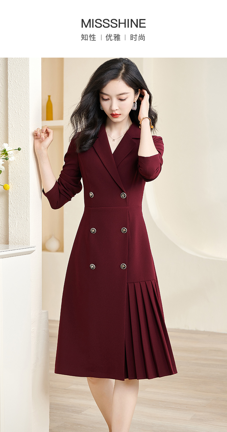 剩S 米思阳2024春季新款优雅气质通勤西装连衣裙修身显瘦长袖裙子2842
