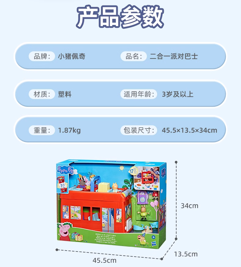 孩之宝Hasbro 小猪佩奇豪华多功能派对巴士套装HASCF88815C00