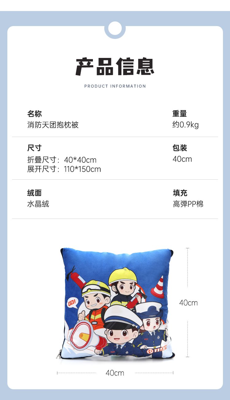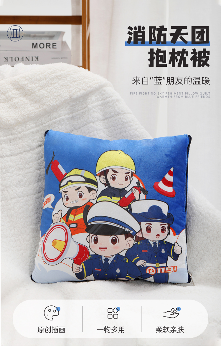 【消防天团抱枕被】柔软舒适靠枕靠垫 抱枕被子两用
