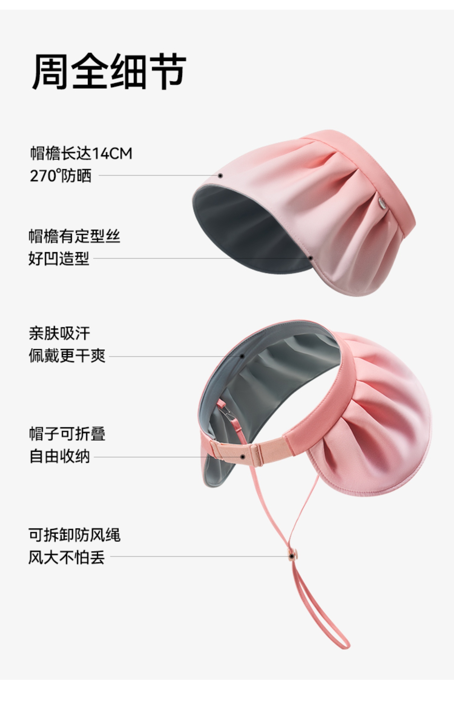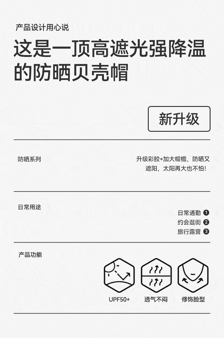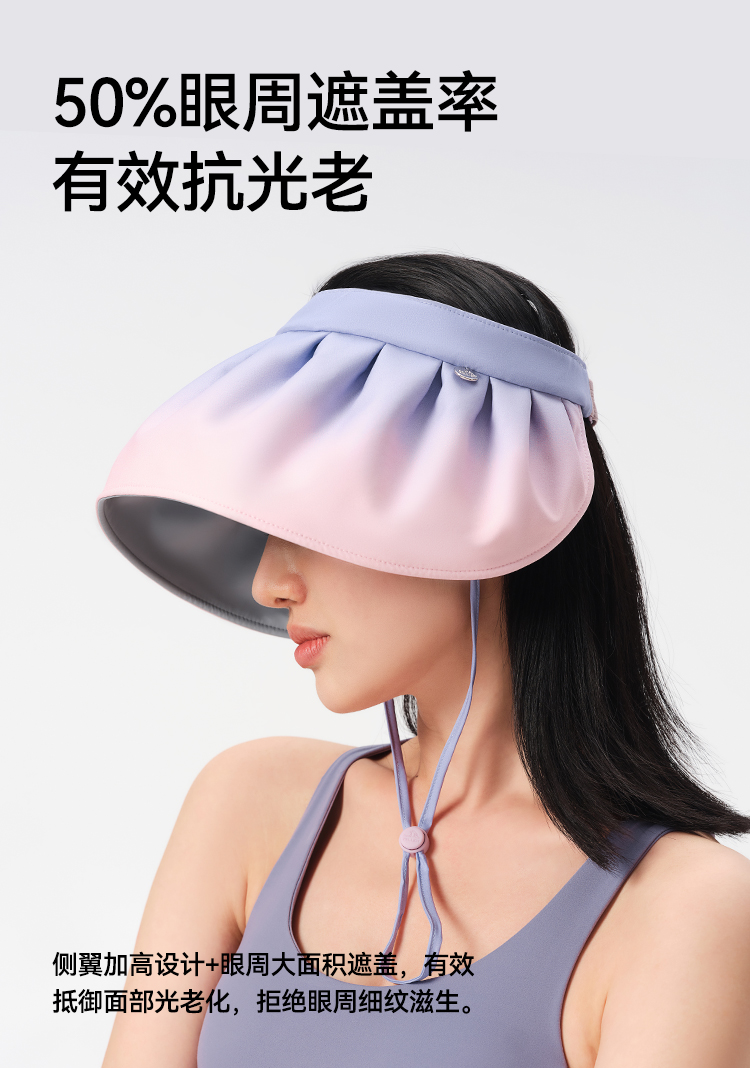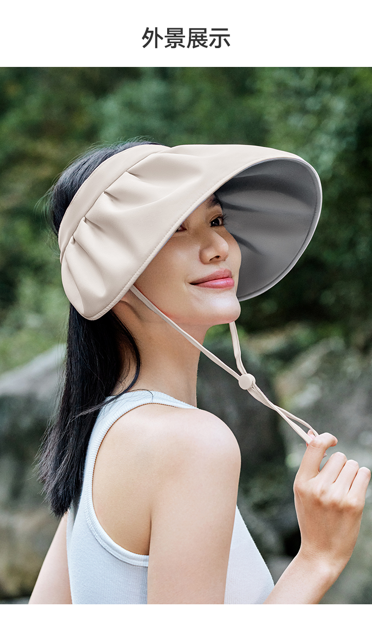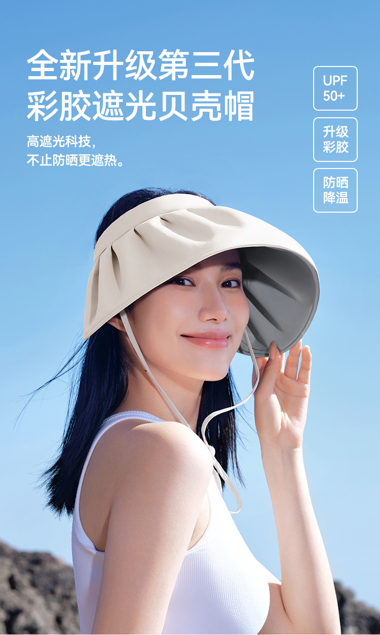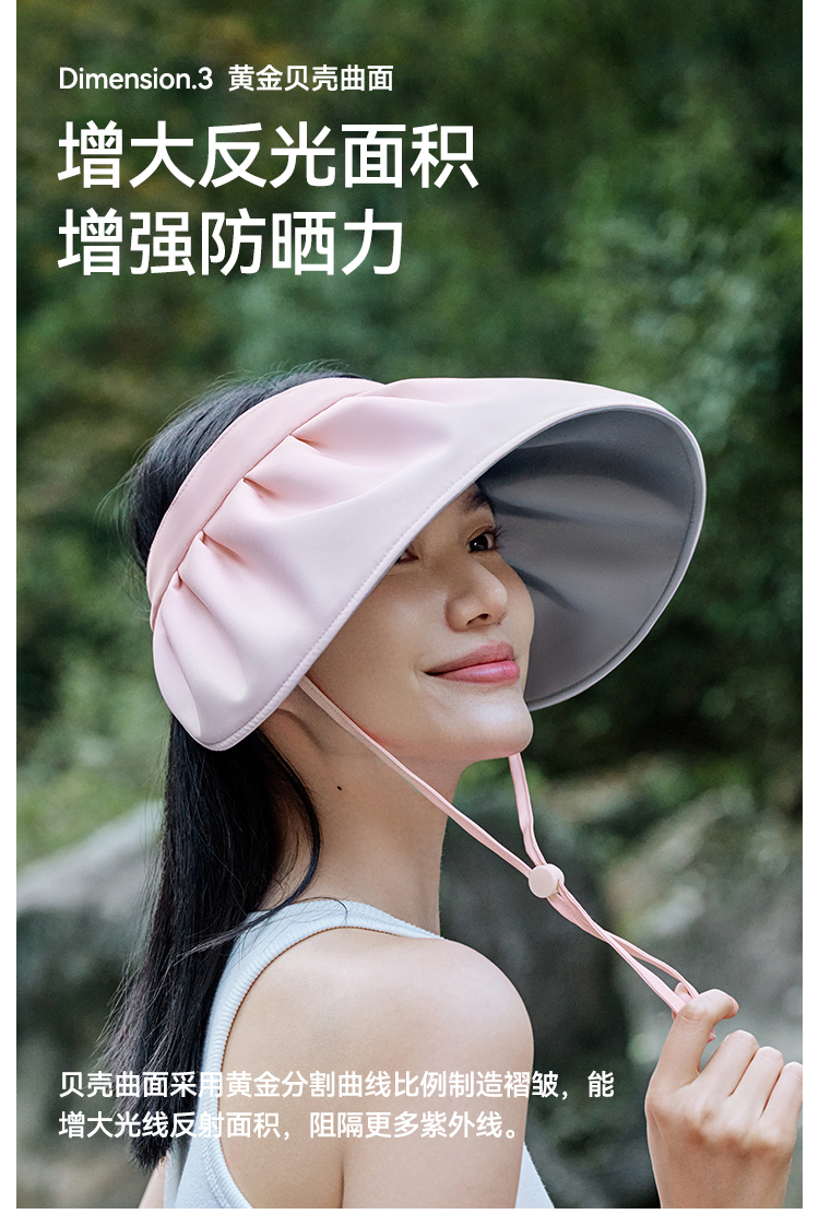 伯希和户外防晒帽女夏彩胶遮阳空顶骑行遮脸大帽檐太阳贝壳帽子