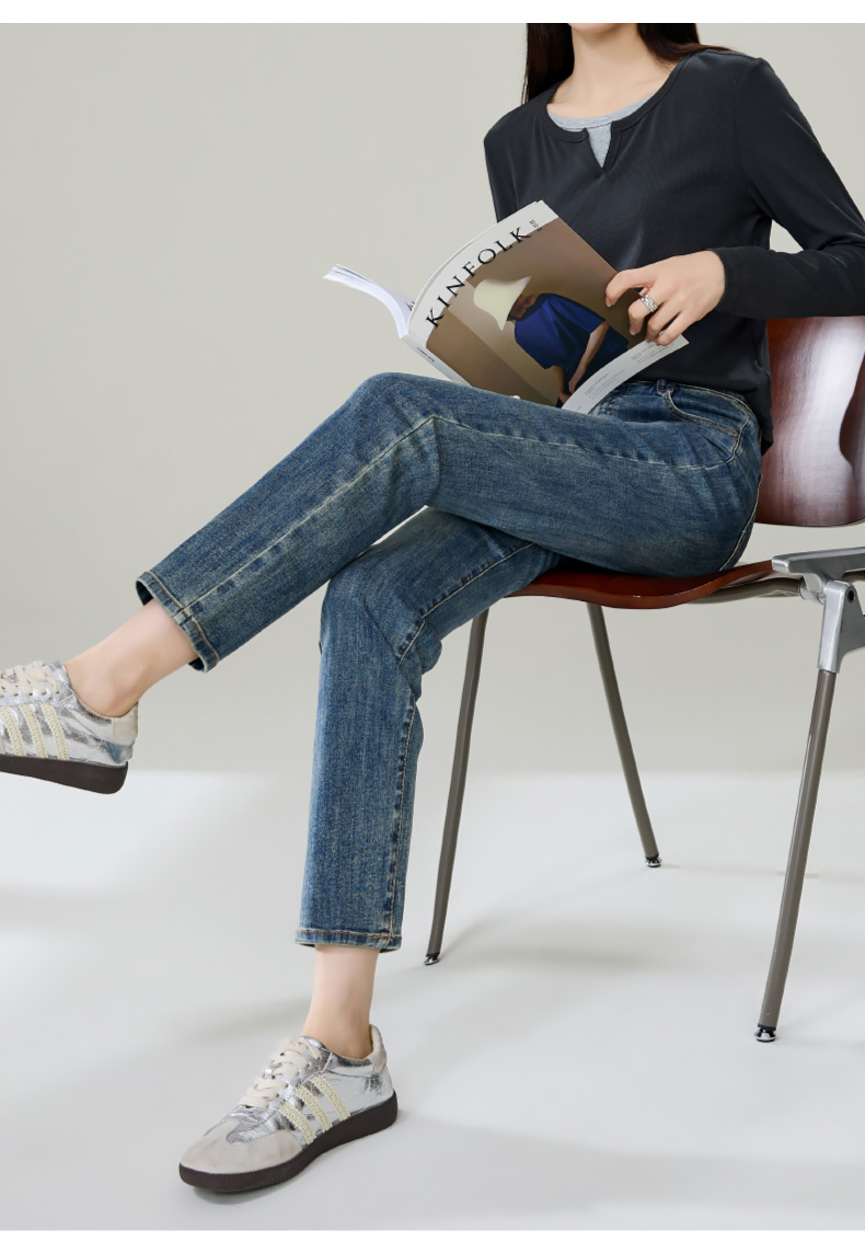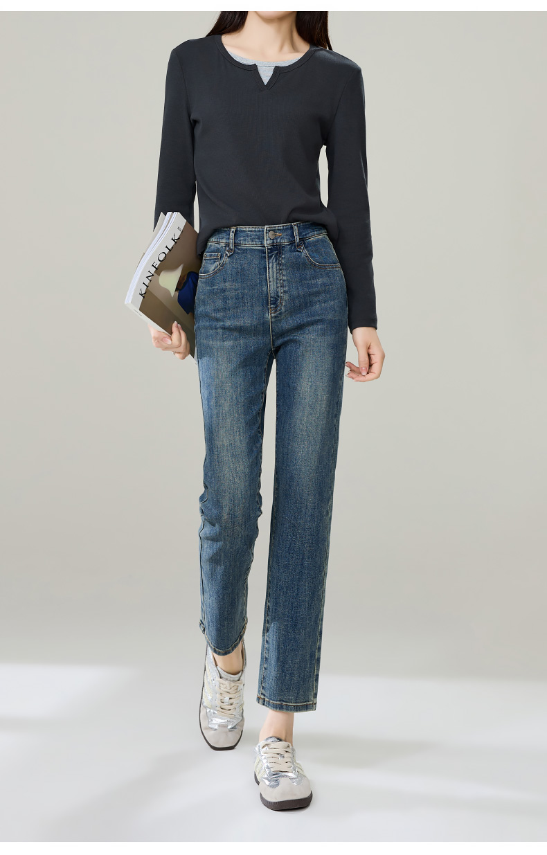 【春新品!4色!直腿显瘦裤】逸阳春季新款不易掉色直筒烟管牛仔裤9989