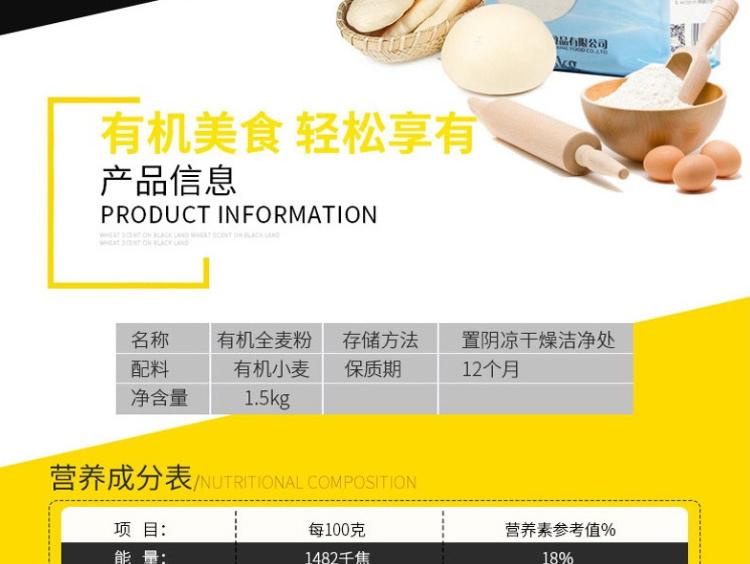 亲民食品 北大荒 烘焙原料 亲民有机全麦面粉 1.5kg