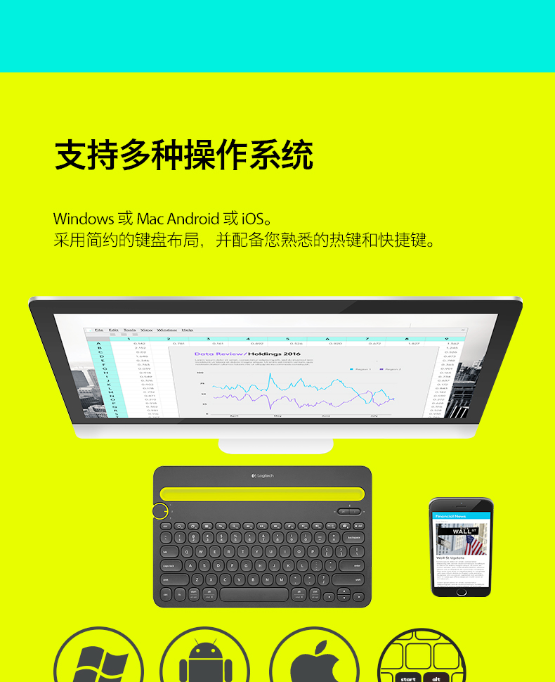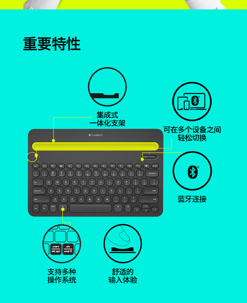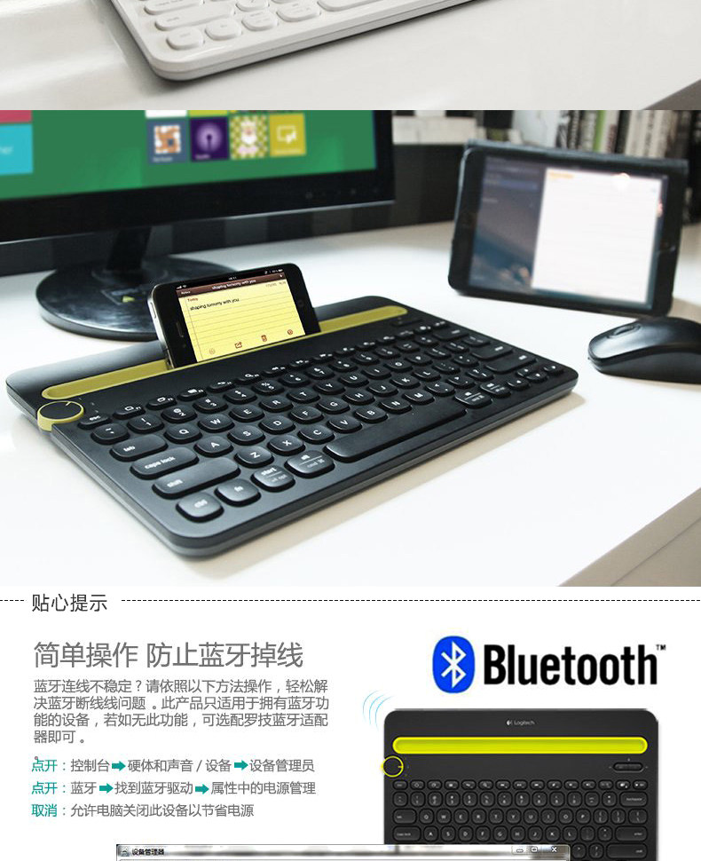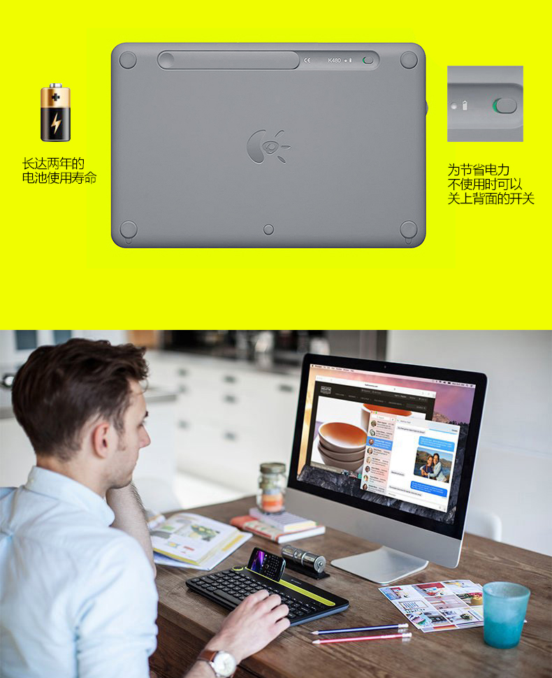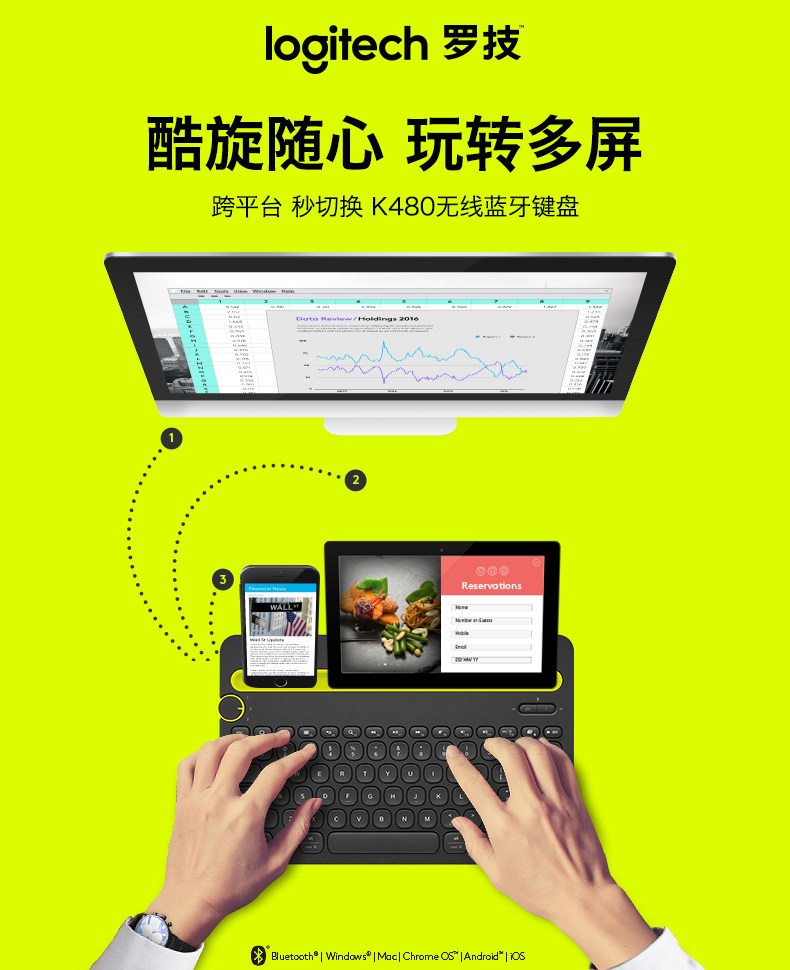 罗技K480无线蓝牙键盘适用于ipad苹果手机平板外设
