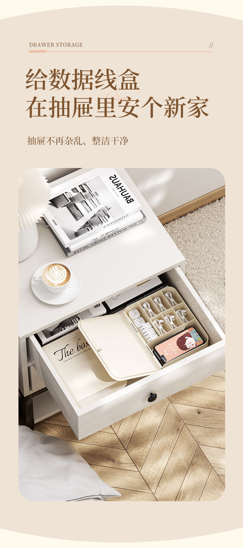 「三色可选!分区收纳」数据线收纳盒 手机壳钢化膜充电宝耳机充电线整理桌面分格储物盒子