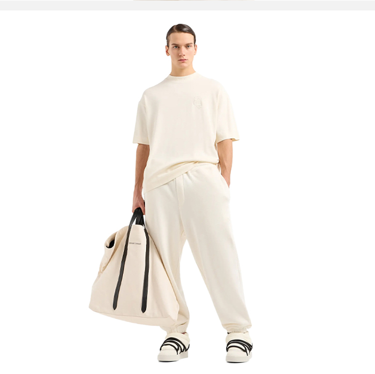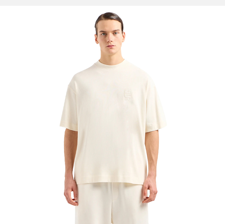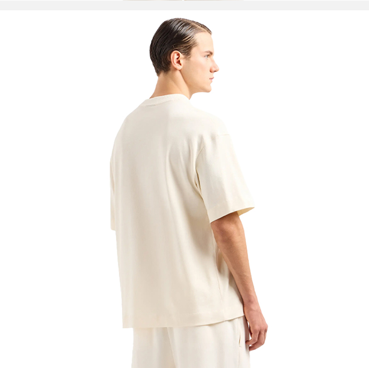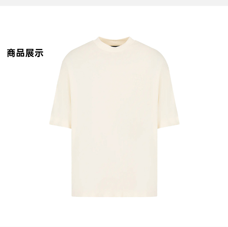 EMPORIO ARMANI 阿玛尼 男士徽标刺绣超大号厚重平纹针织圆领短袖T恤 米色 3D1TD5 1J0EZ 0128