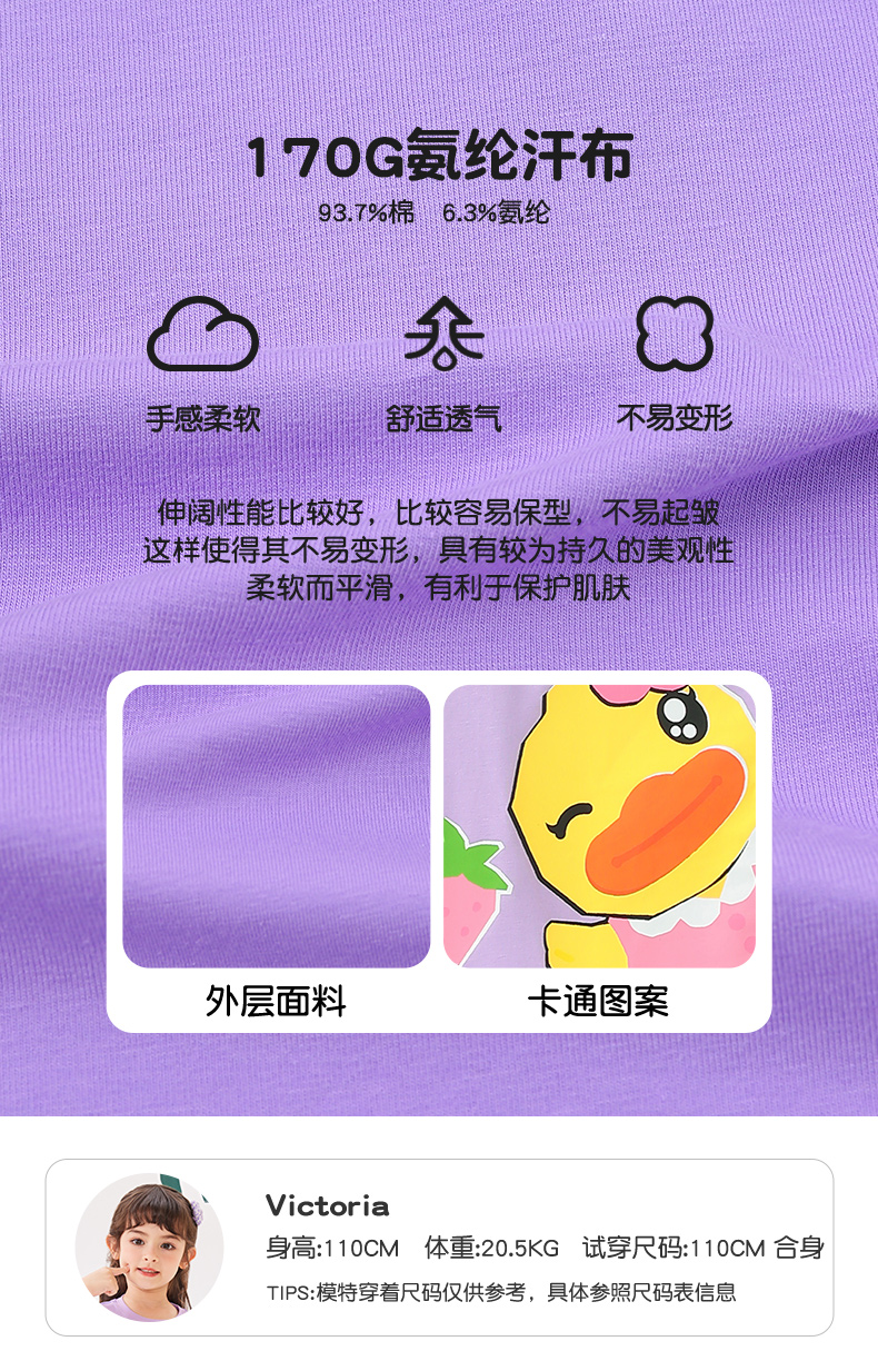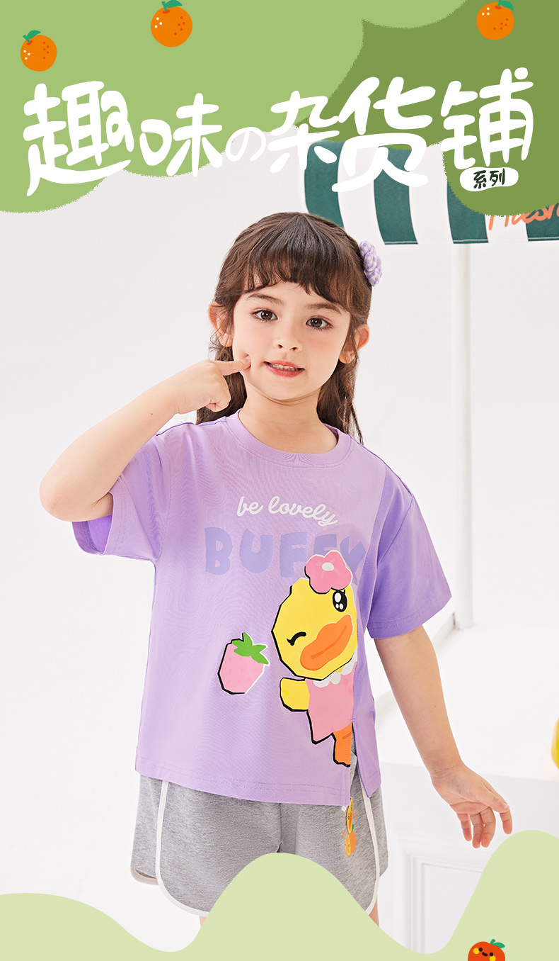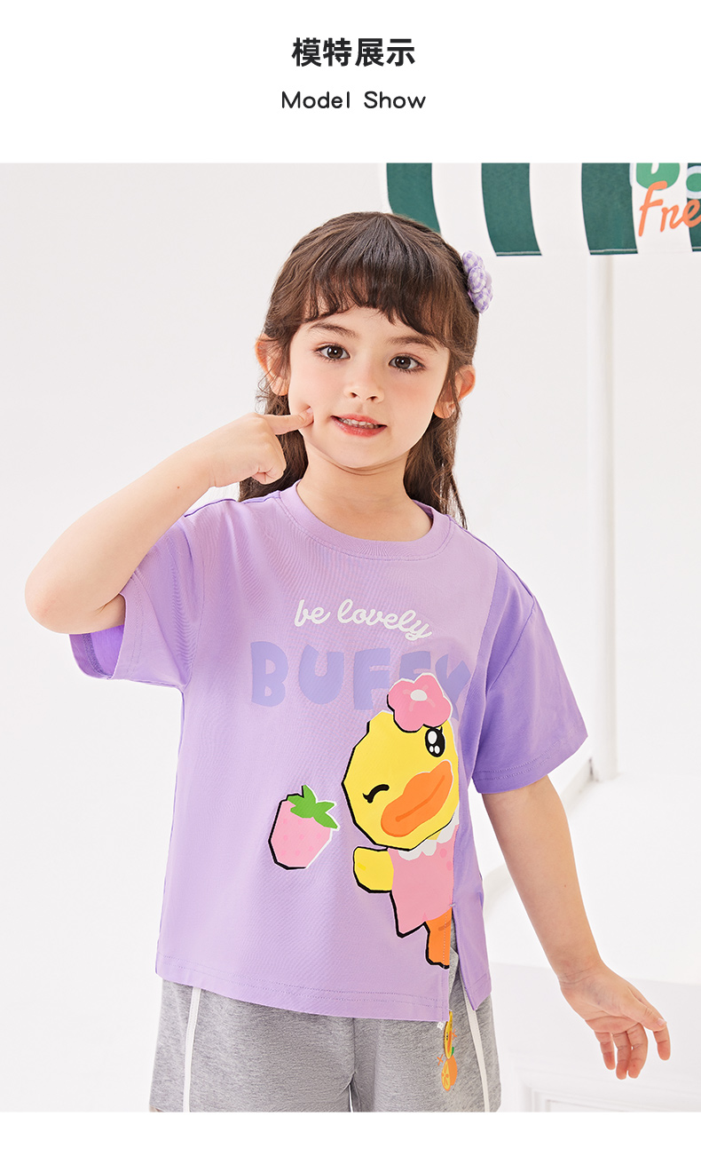 [驱蚊抗菌]bduck小黄鸭童装女童短袖T恤夏季纯棉宝宝上衣儿童薄款90-140 FF2701038
