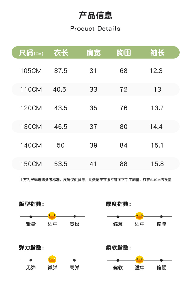 B.Duck小黄鸭童装夏季短袖T恤105-150 FF2401012