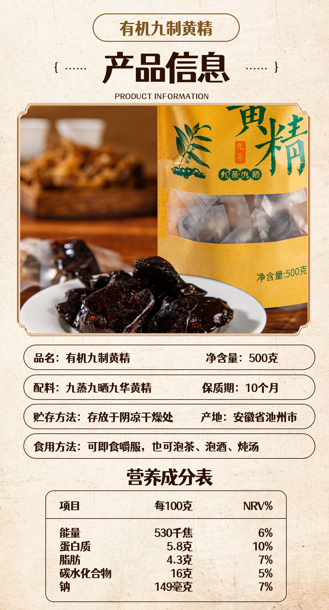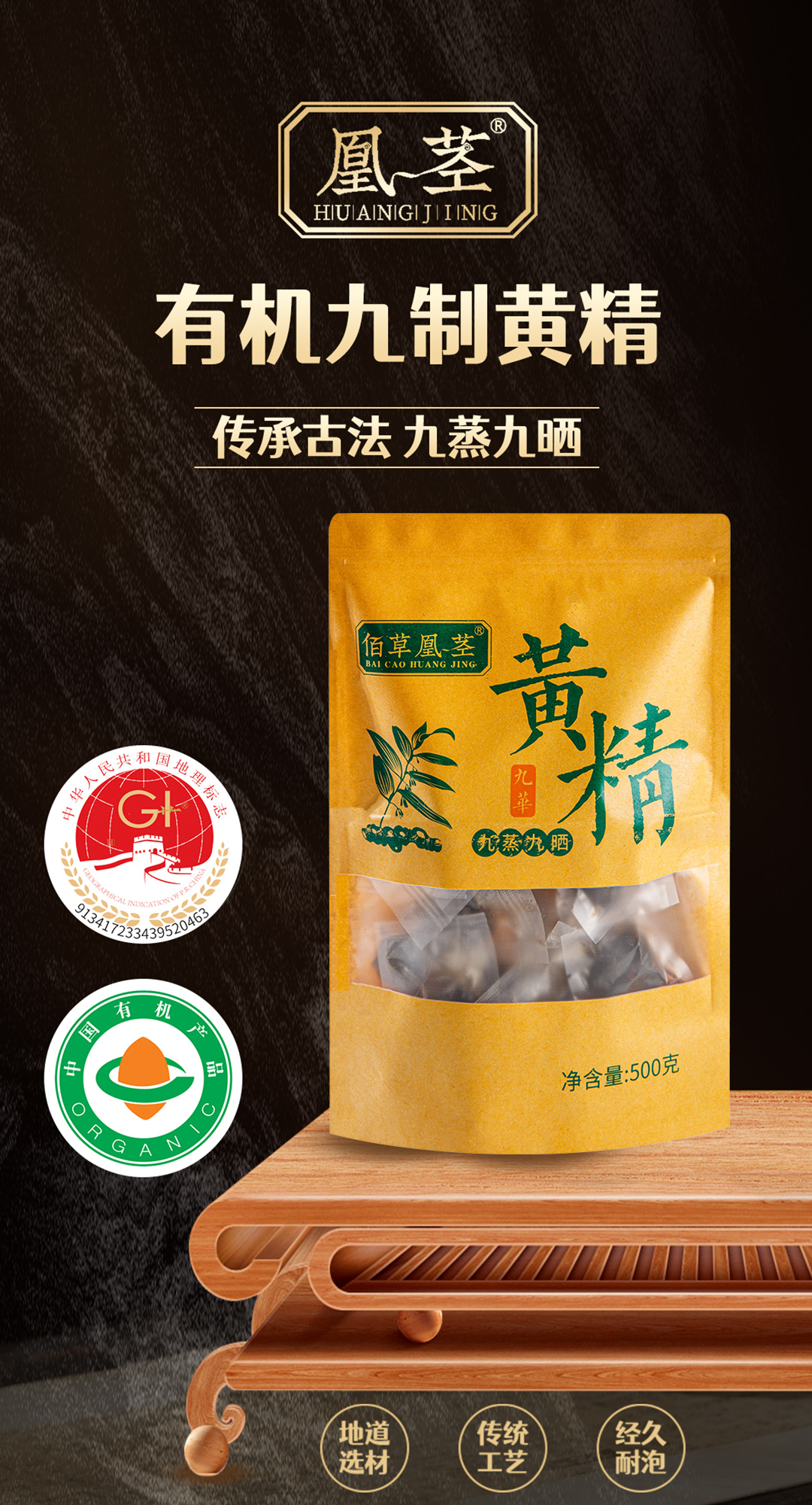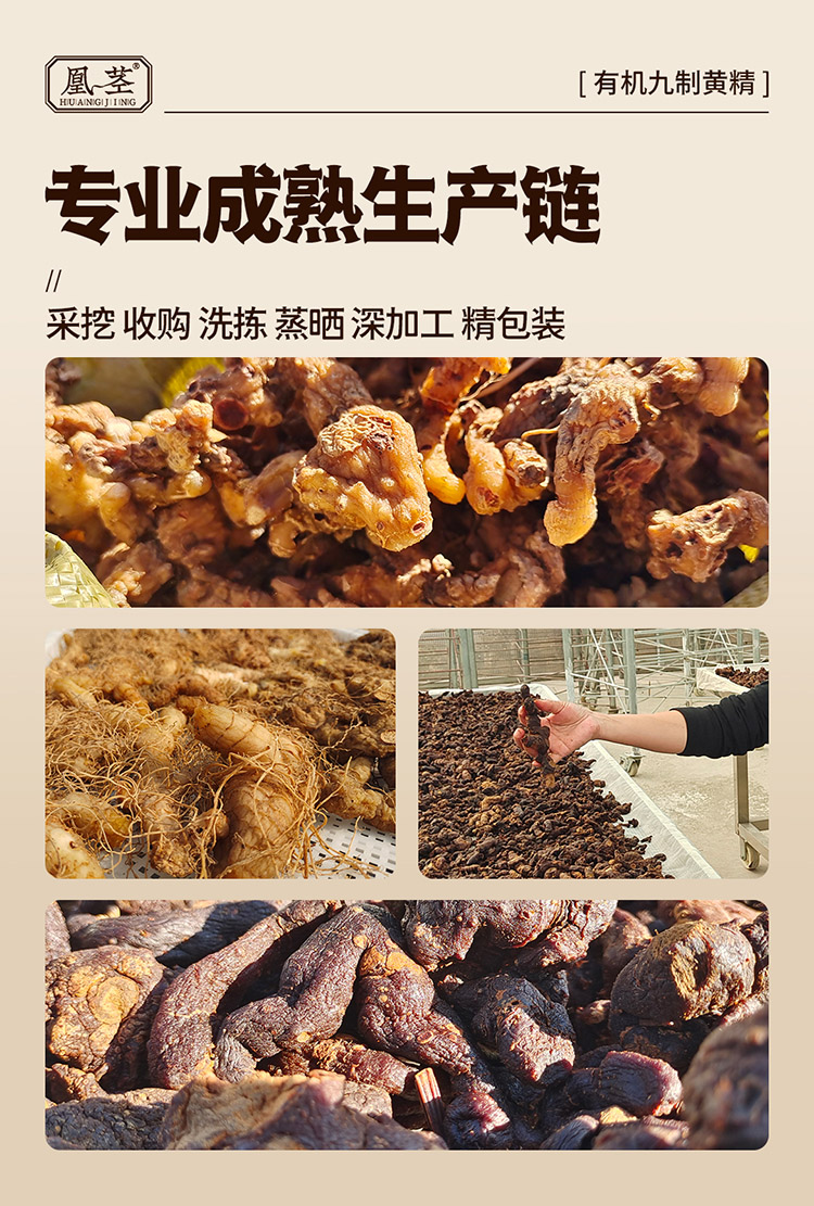 佰草凰茎有机黄精九蒸九晒九华黄精九制多花黄精断食辟谷即食500g