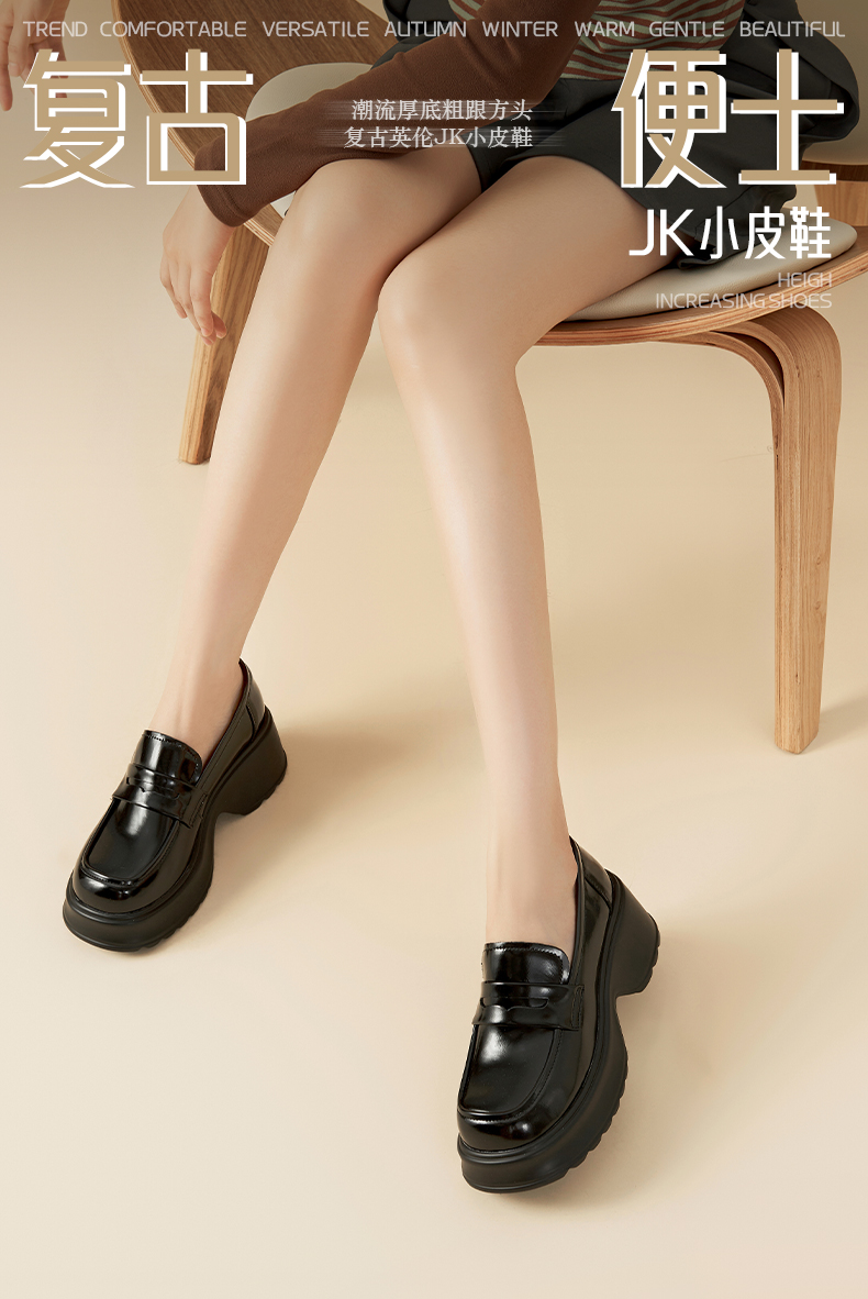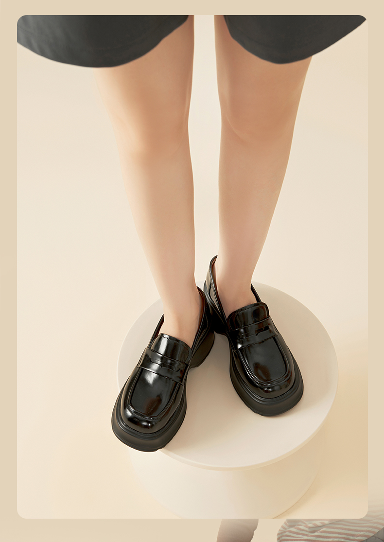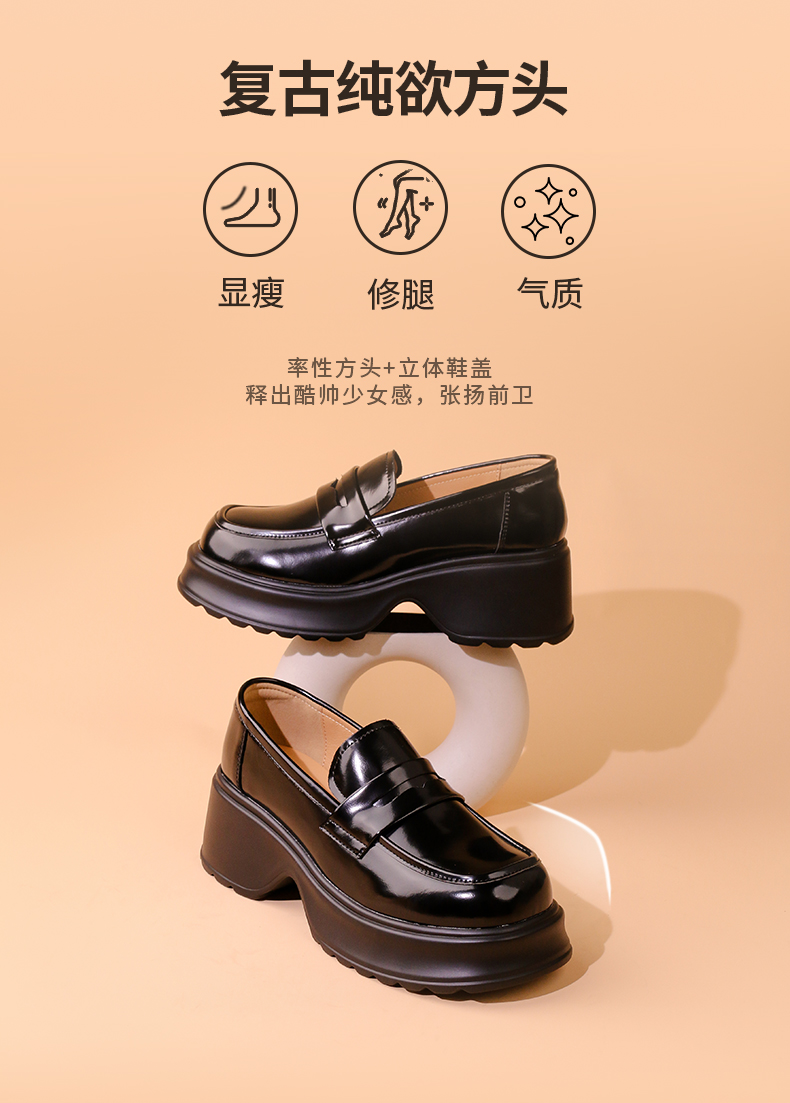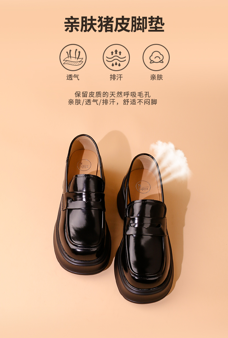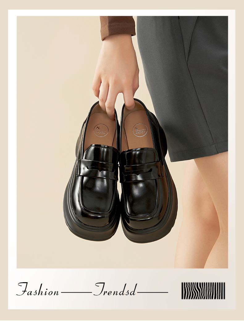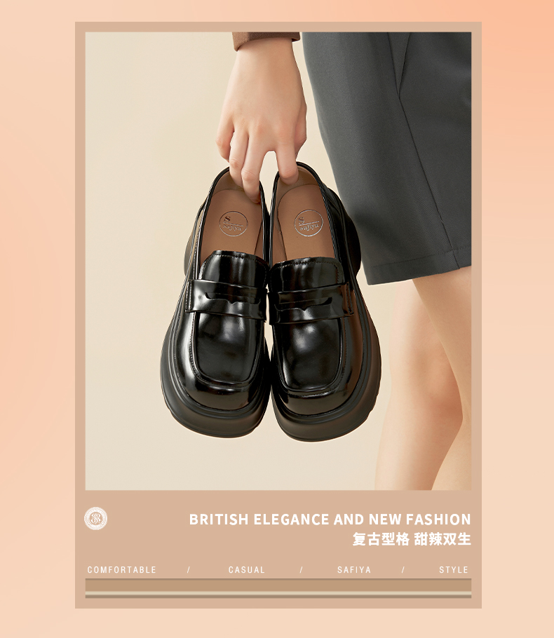 Safiya/索菲娅2024秋潮流厚底粗跟方头复古英伦JK小皮鞋乐福鞋 SF43112154