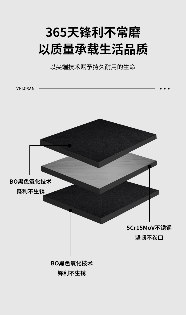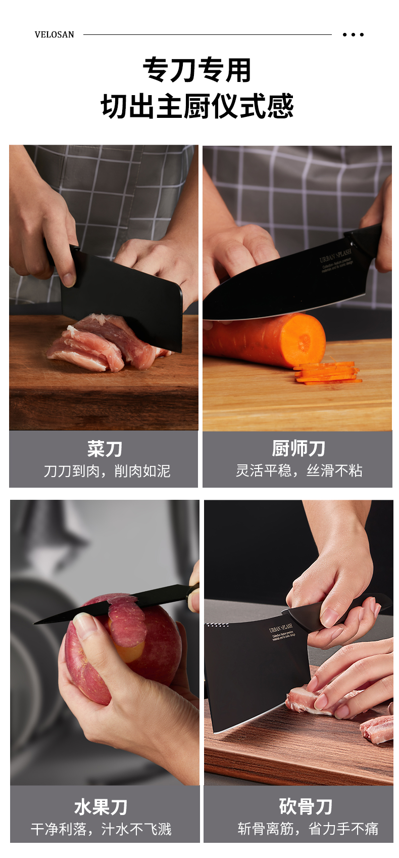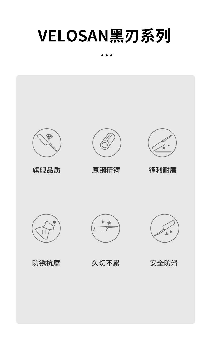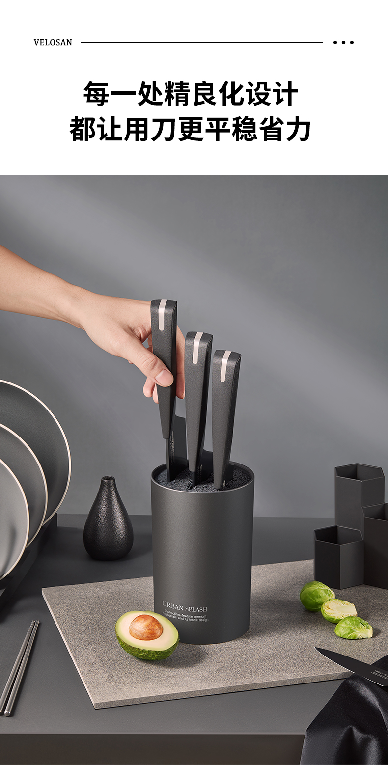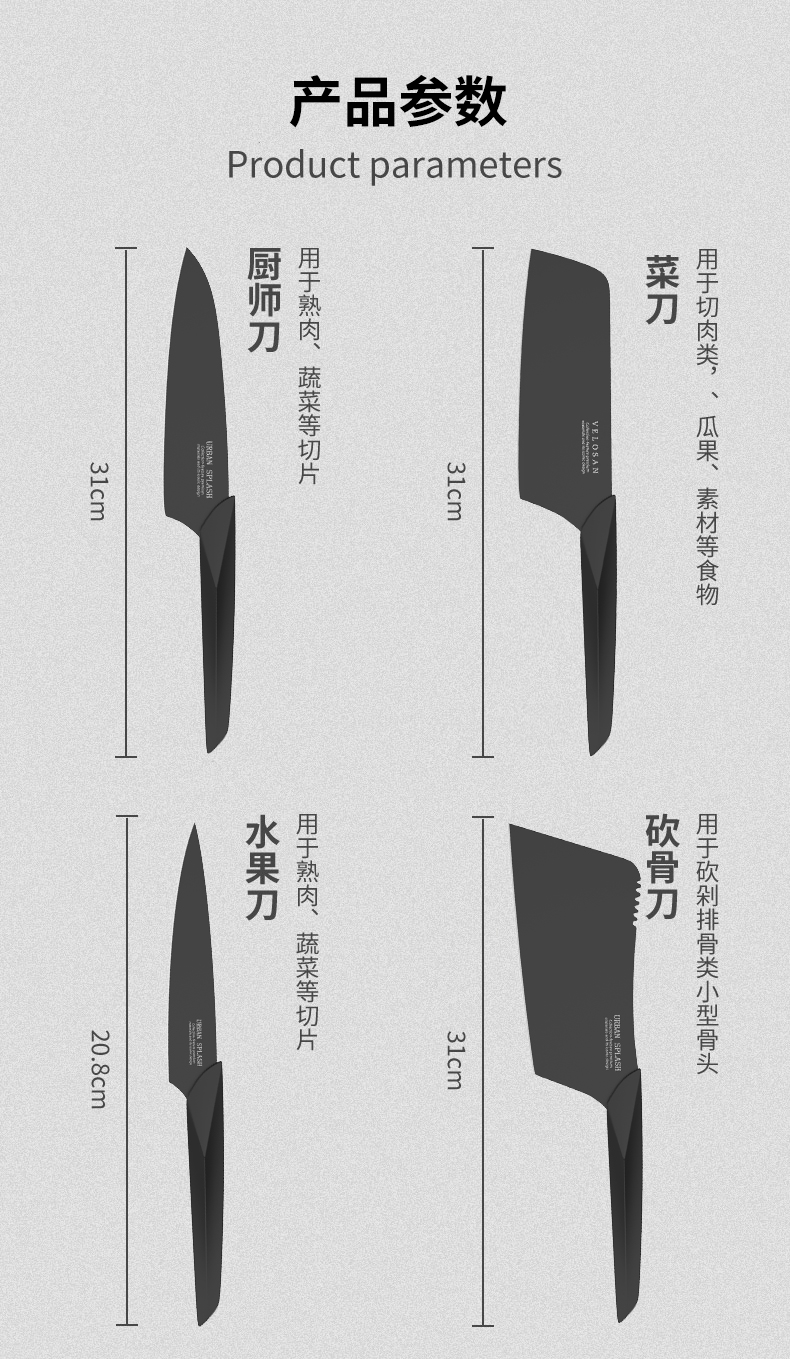 velosan黑刃刀具套装组合家用全套厨房菜刀切菜刀水果刀不锈钢