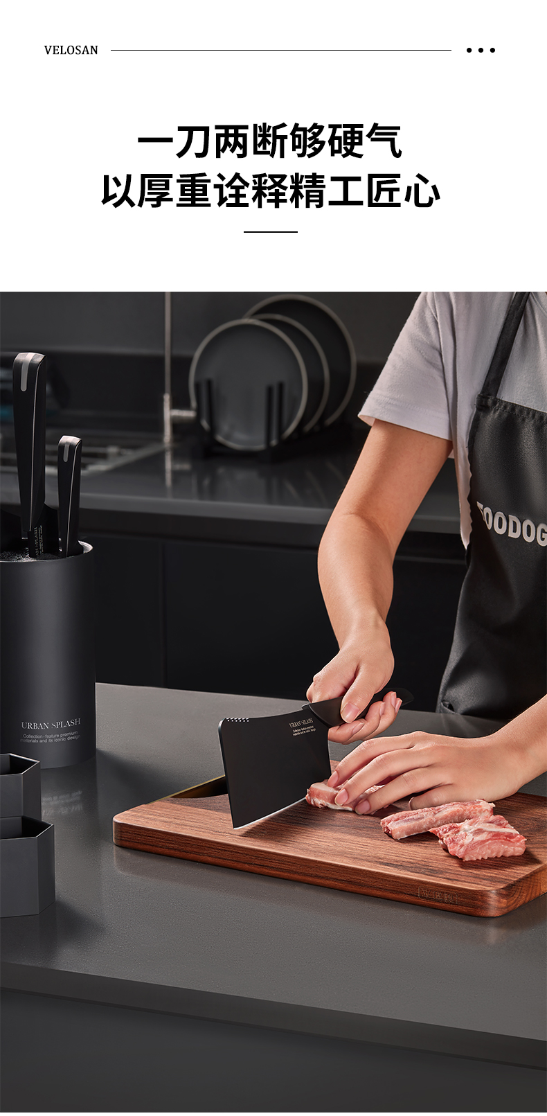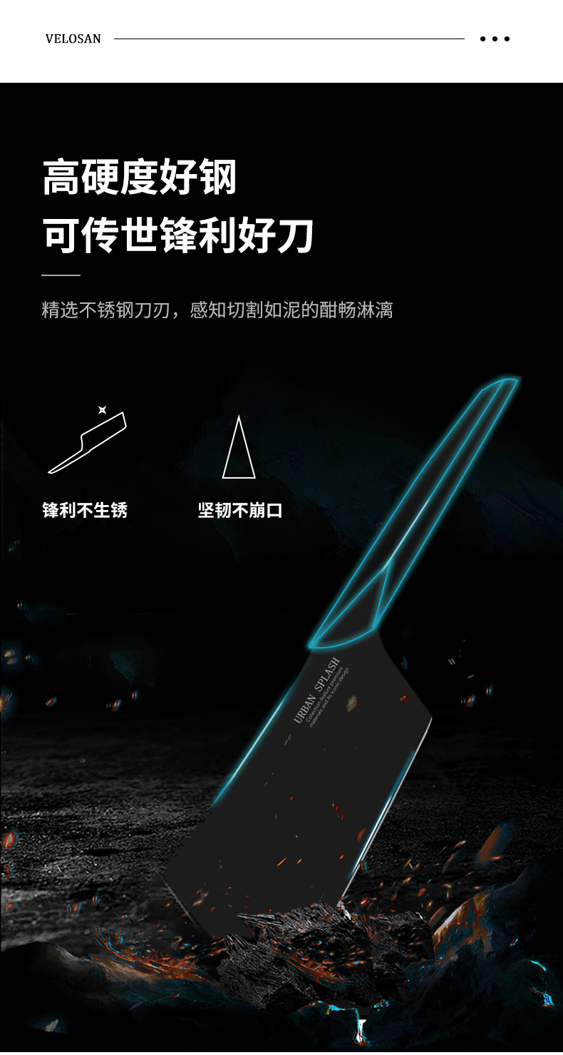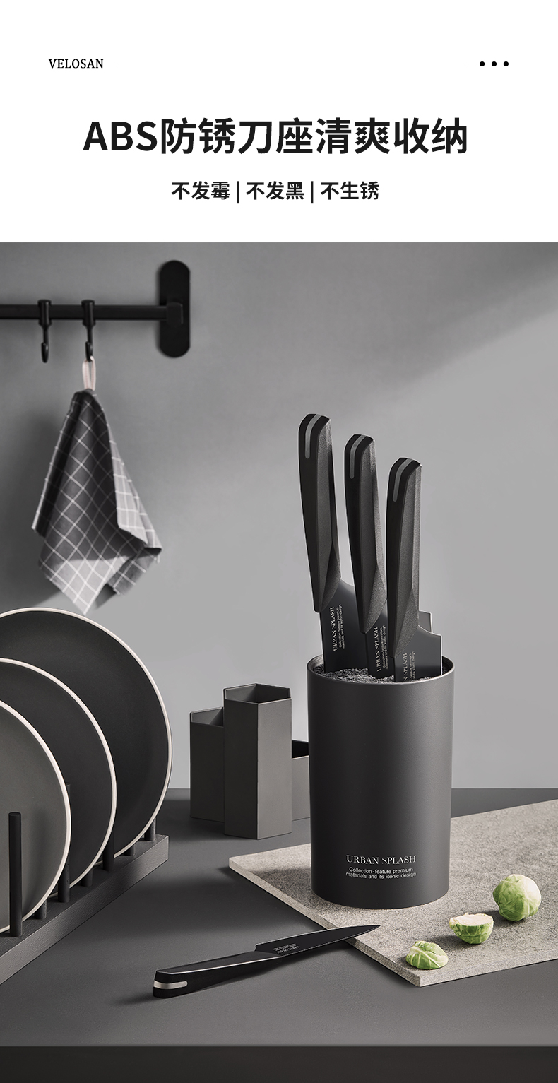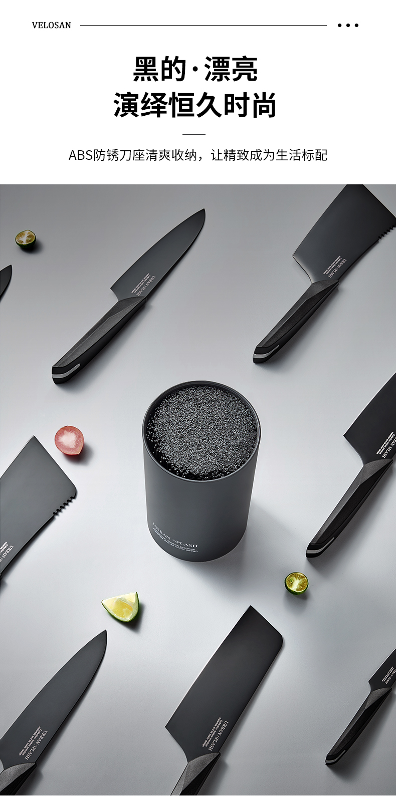 velosan黑刃刀具套装组合家用全套厨房菜刀切菜刀水果刀不锈钢