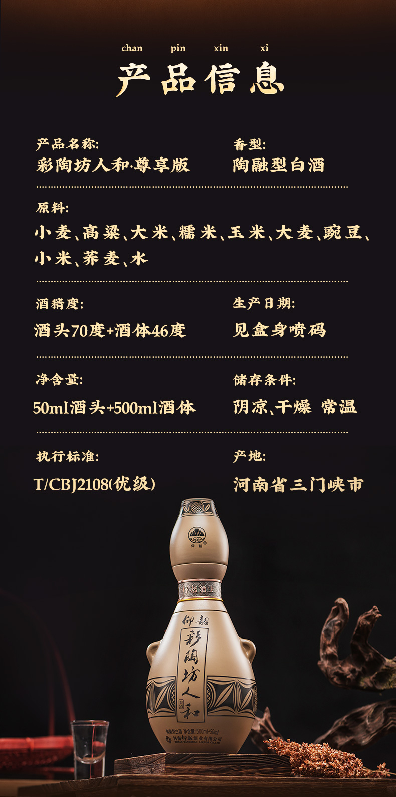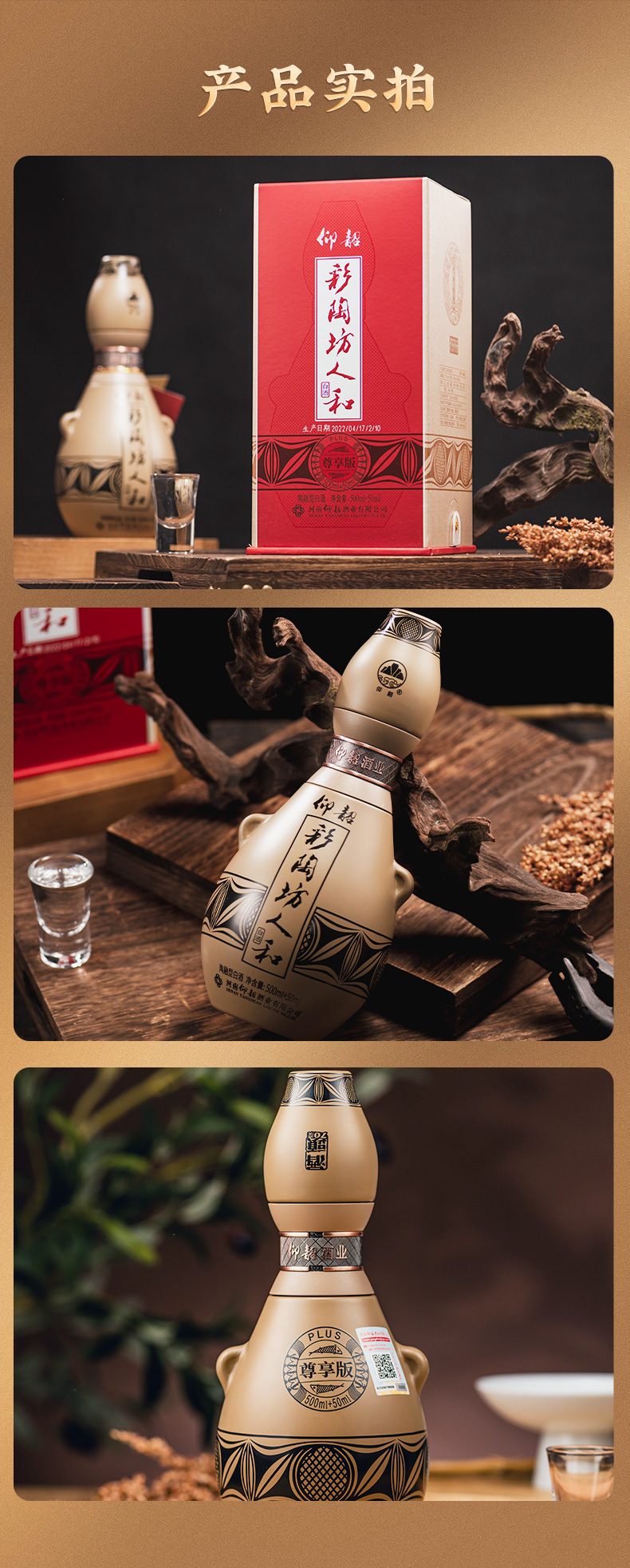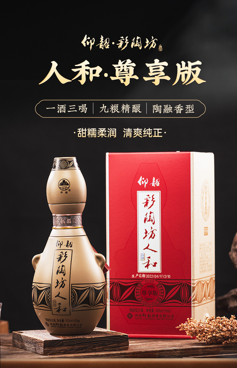 河南仰韶彩陶坊 人和尊享plus版 加量装 礼盒装500ml46度+50ml70度酒头